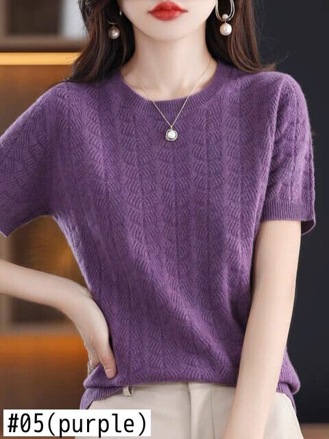服半袖 Tシャツ夏 O ネックルーズ Tシャツ中空アウト薄いニットトップスソリッドソフト Tシャツ ショート ハーフスリーブ サマー 夏物 Oネック ソリッドカラー
