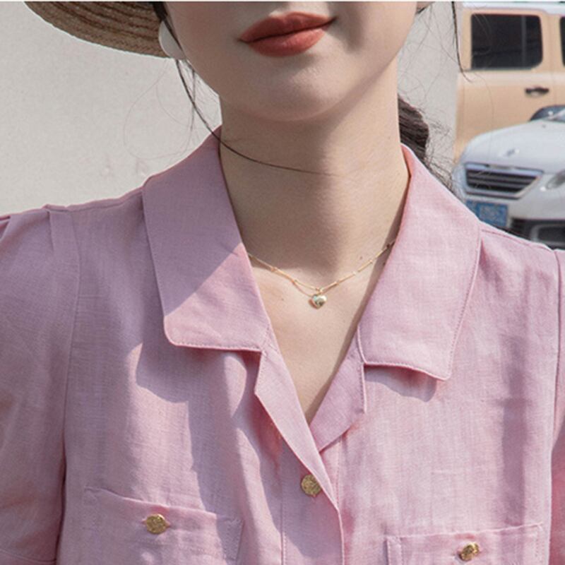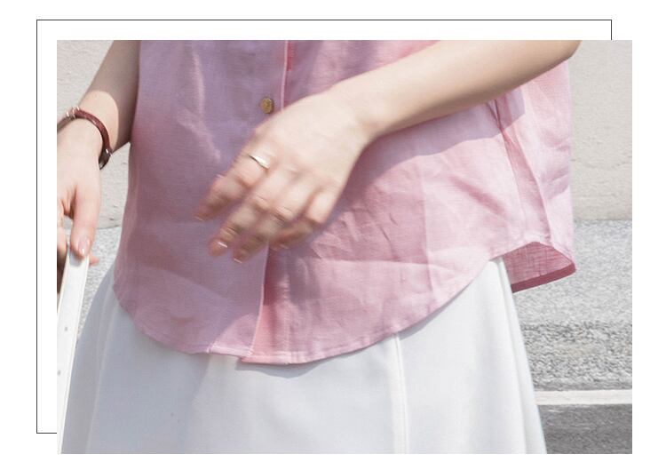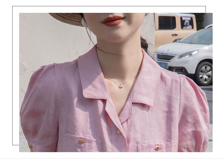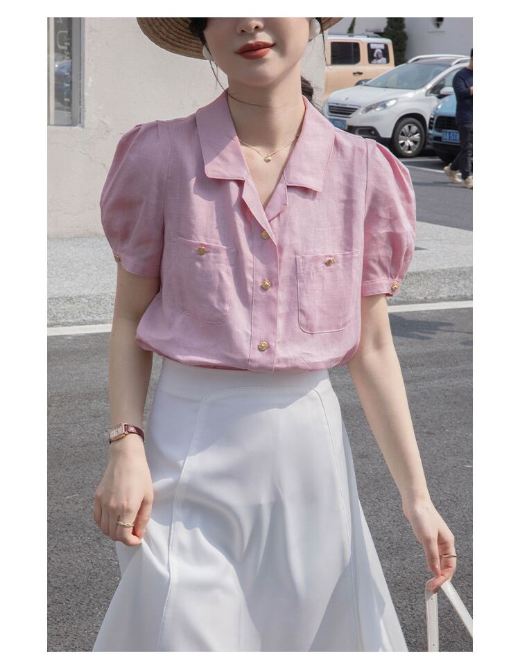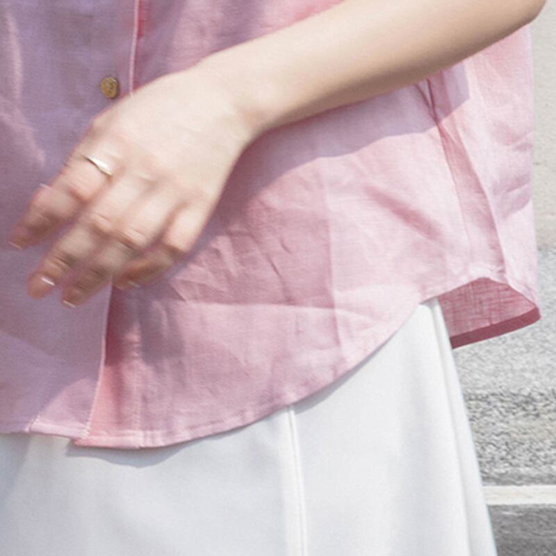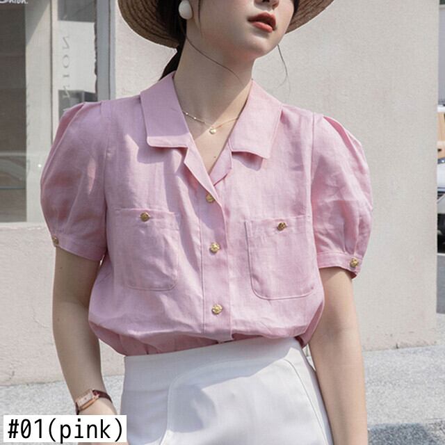 Blusa Moda 夏 V ネックルーズブラウス半袖ピンクシャツ服コットンリネントップス ショート ハーフスリーブ サマー 夏物 Vネック