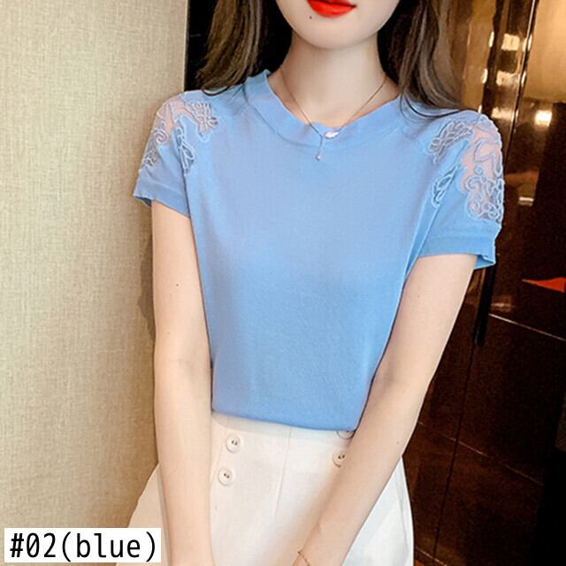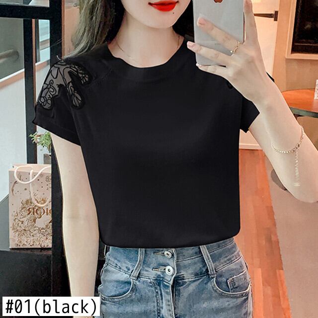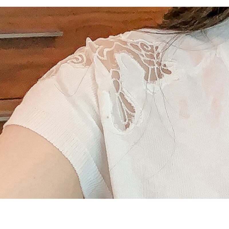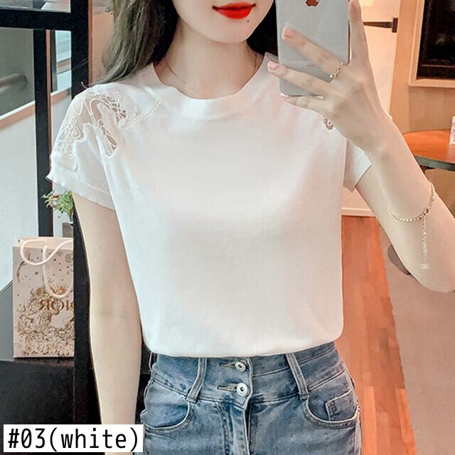 ニットトップスプルオーバー Tシャツ中空アウト半袖 Tシャツ白 Tシャツ夏 ショート ホワイト ハーフスリーブ サマー 夏物