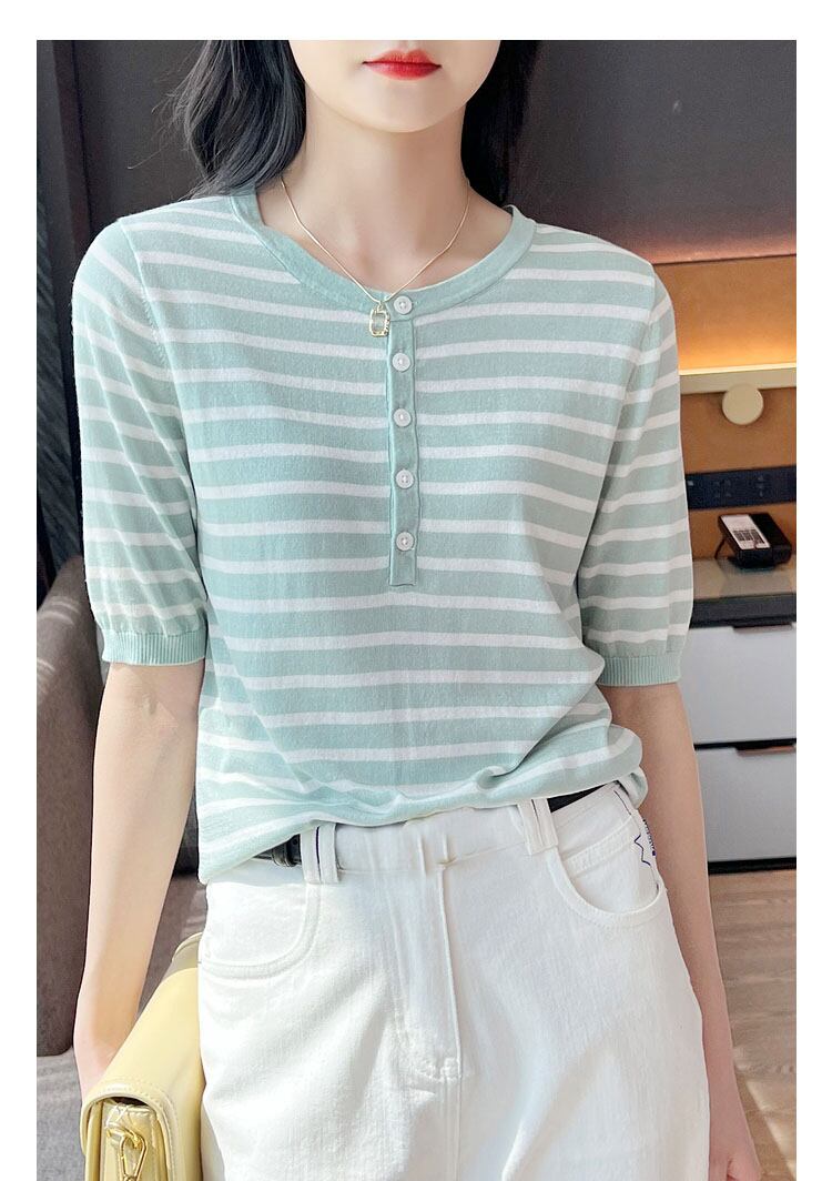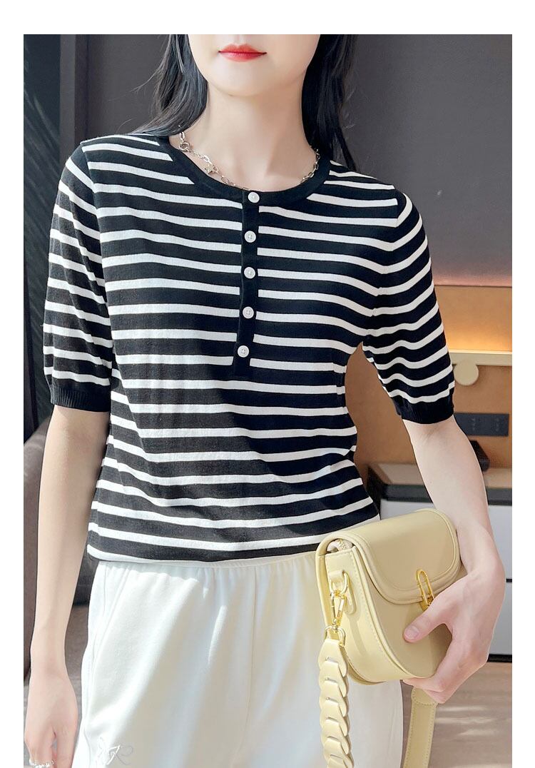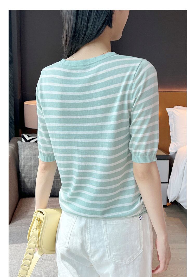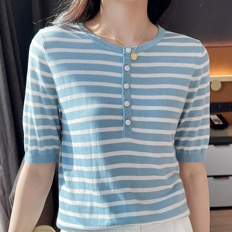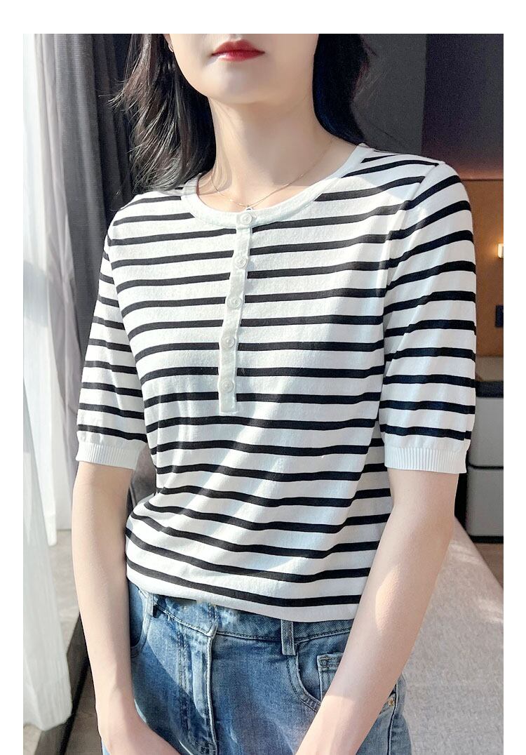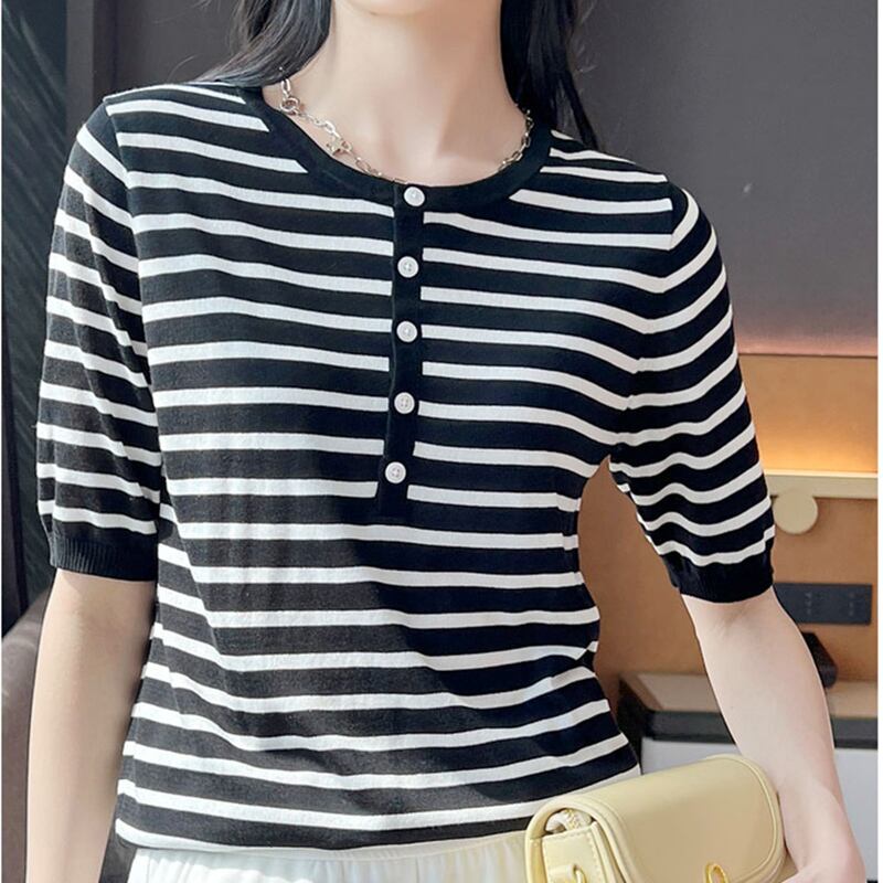 夏半袖 Tシャツ服ニットトップスストライプ O ネック Tシャツルース Tシャツ ショート ハーフスリーブ サマー 夏物 Oネック