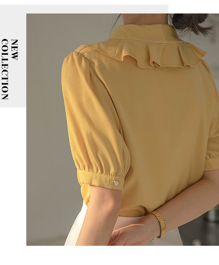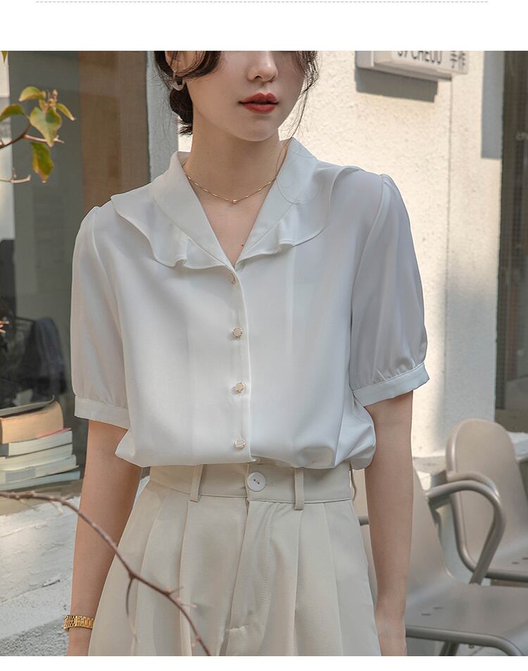 シフォンブラウス夏白シャツ半袖ルーズトップ E ショート ホワイト ハーフスリーブ サマー 夏物