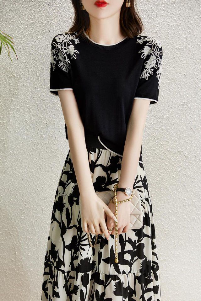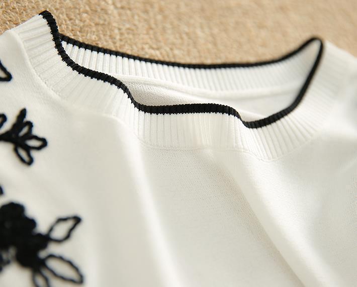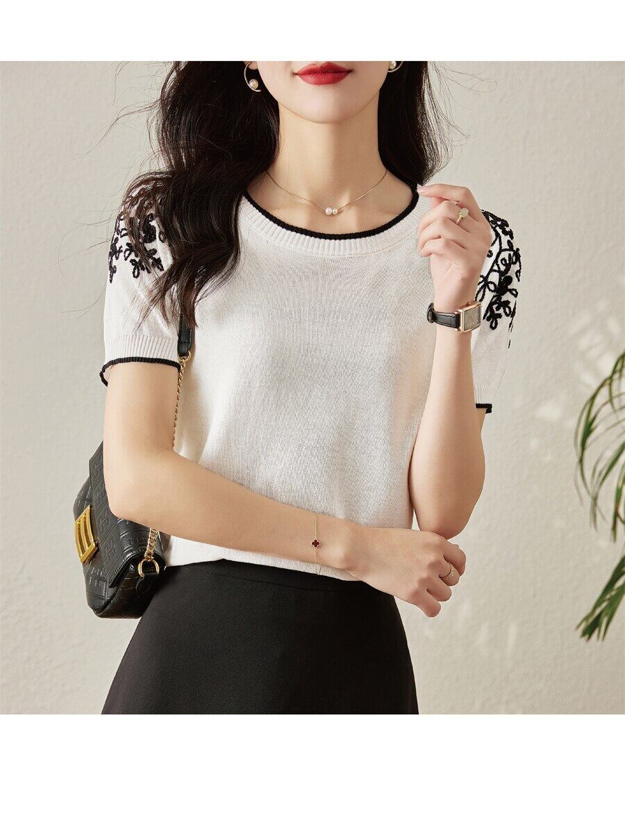 刺繍半袖ニット Tシャツ O ネック薄い Tシャツ夏レディース白 Tシャツ Camiseta ショート ホワイト ハーフスリーブ サマー 夏物 Oネック