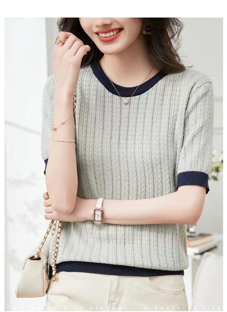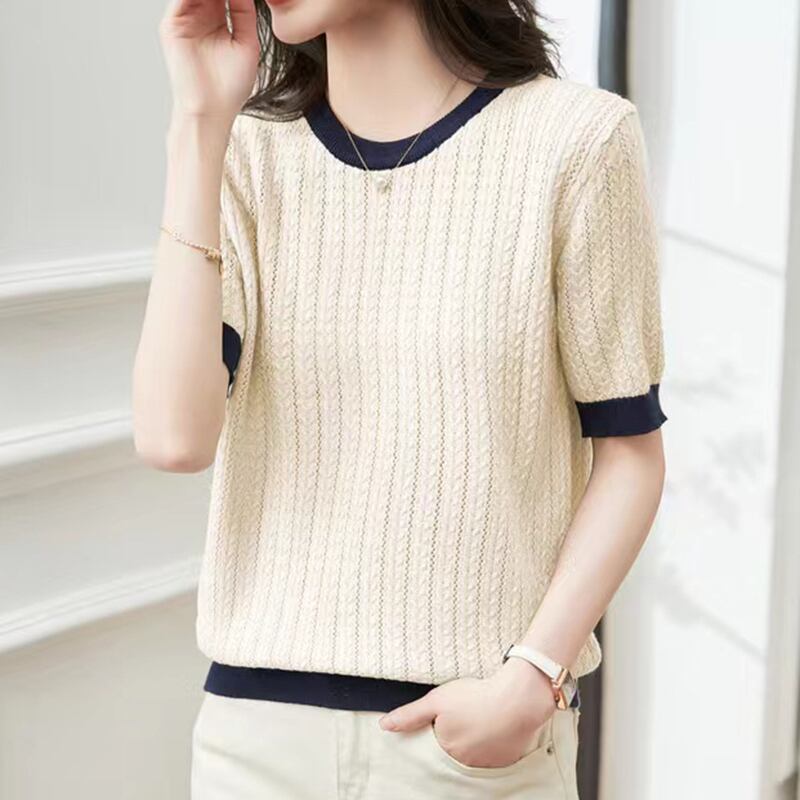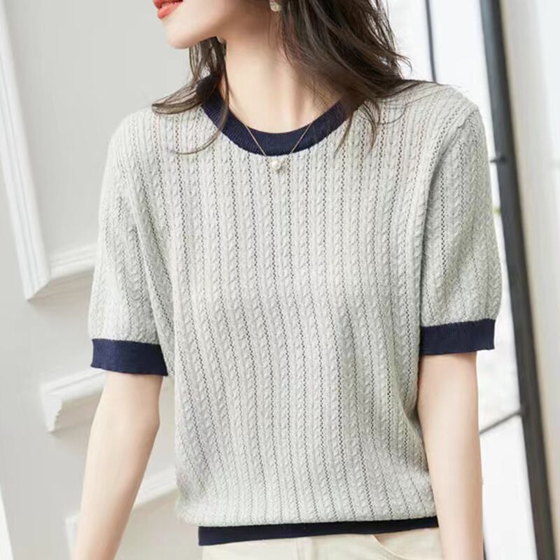 半袖 Tシャツニットトップ夏 O ネックソリッド Tシャツレディースプルオーバー Camisetas デ ショート ハーフスリーブ サマー 夏物 Oネック ソリッドカラー