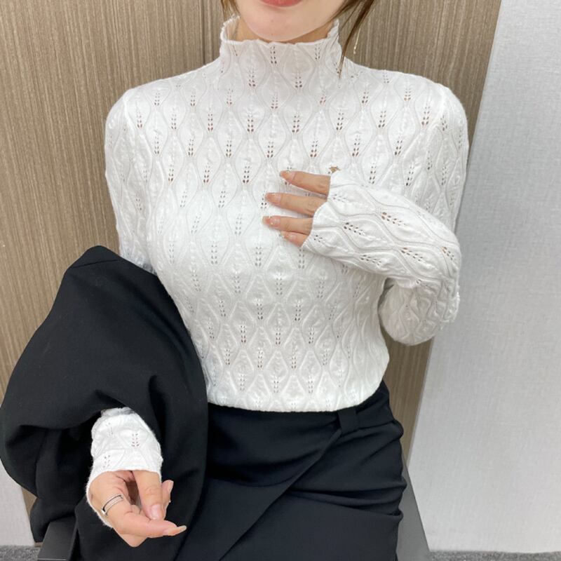 プル秋と冬婦人服長袖プルオーバーセーターソフトホワイトニットトップス ロング オータム 秋物 ウィンター 冬物