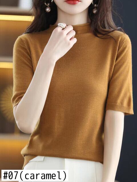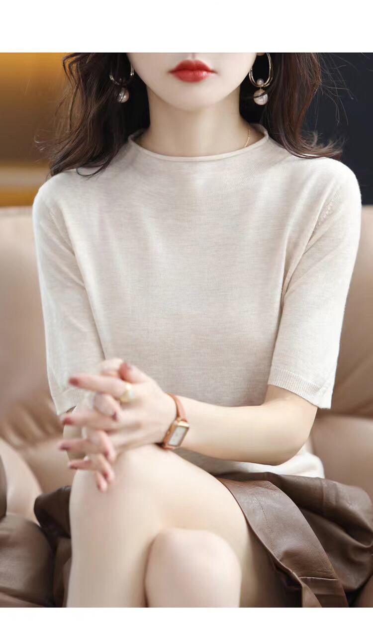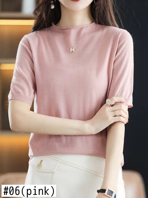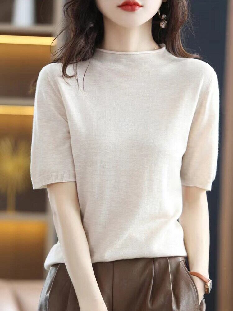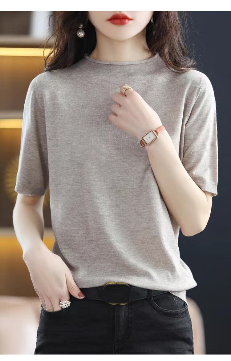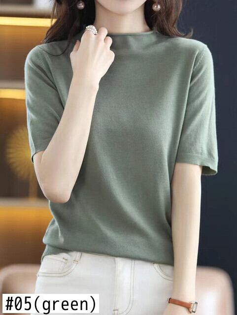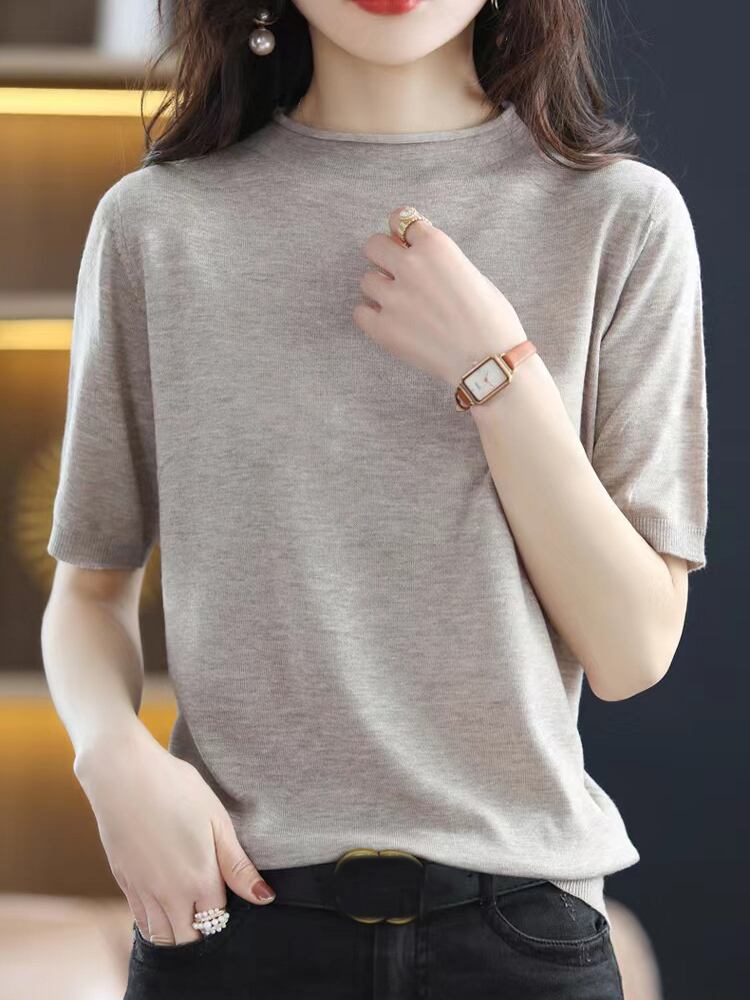 ベーシック半袖ニットトップスロパデサマー Tシャツ服ルーズ O ネック Tシャツ ショート ハーフスリーブ 夏物 Oネック ソリッドカラー