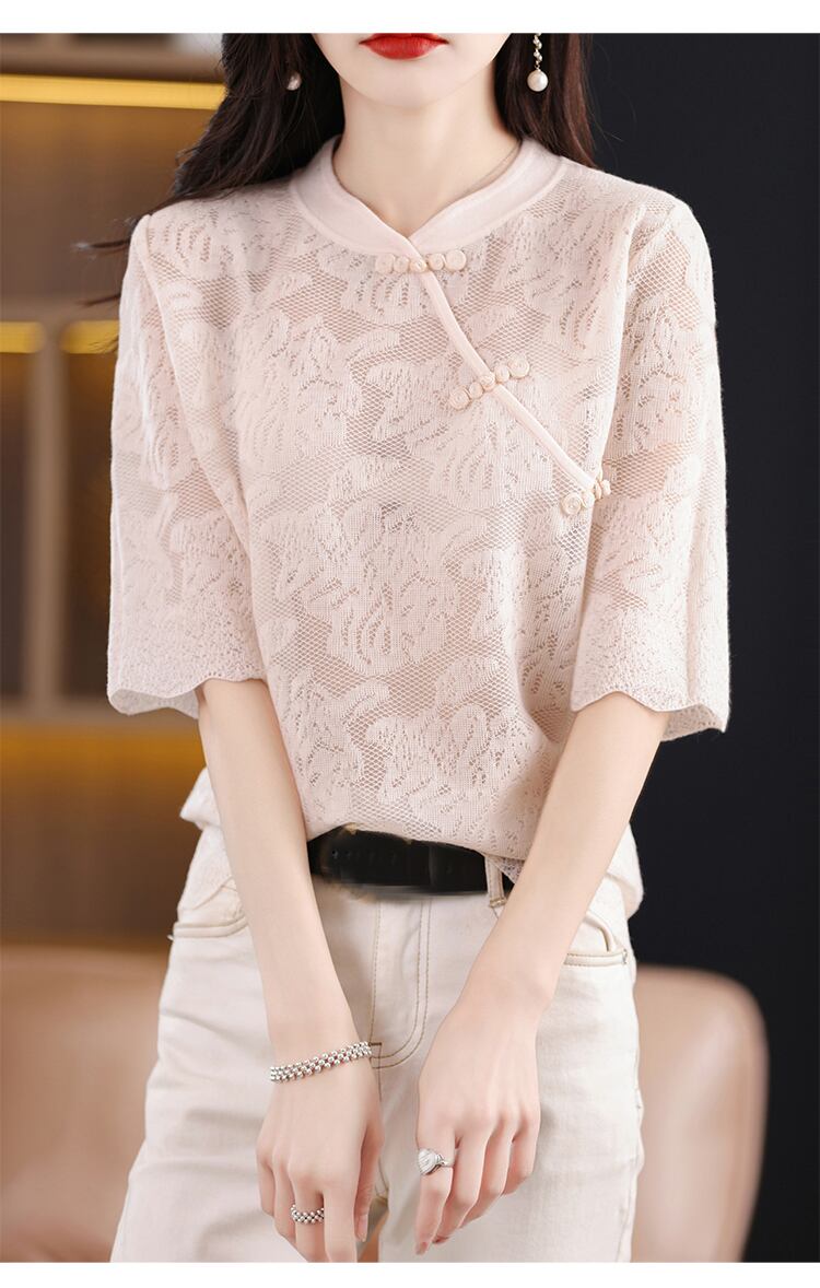 ニットトップ夏中国風レディースプルオーバー薄いルーズ Tシャツ半袖 Tシャツ ショート ハーフスリーブ サマー 夏物