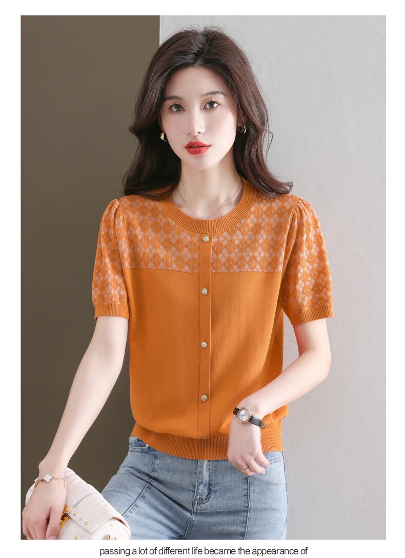Tシャツ半袖ニットトップス夏レディース O ネック Tシャツボタン Tシャツ ショート ハーフスリーブ サマー 夏物 Oネック