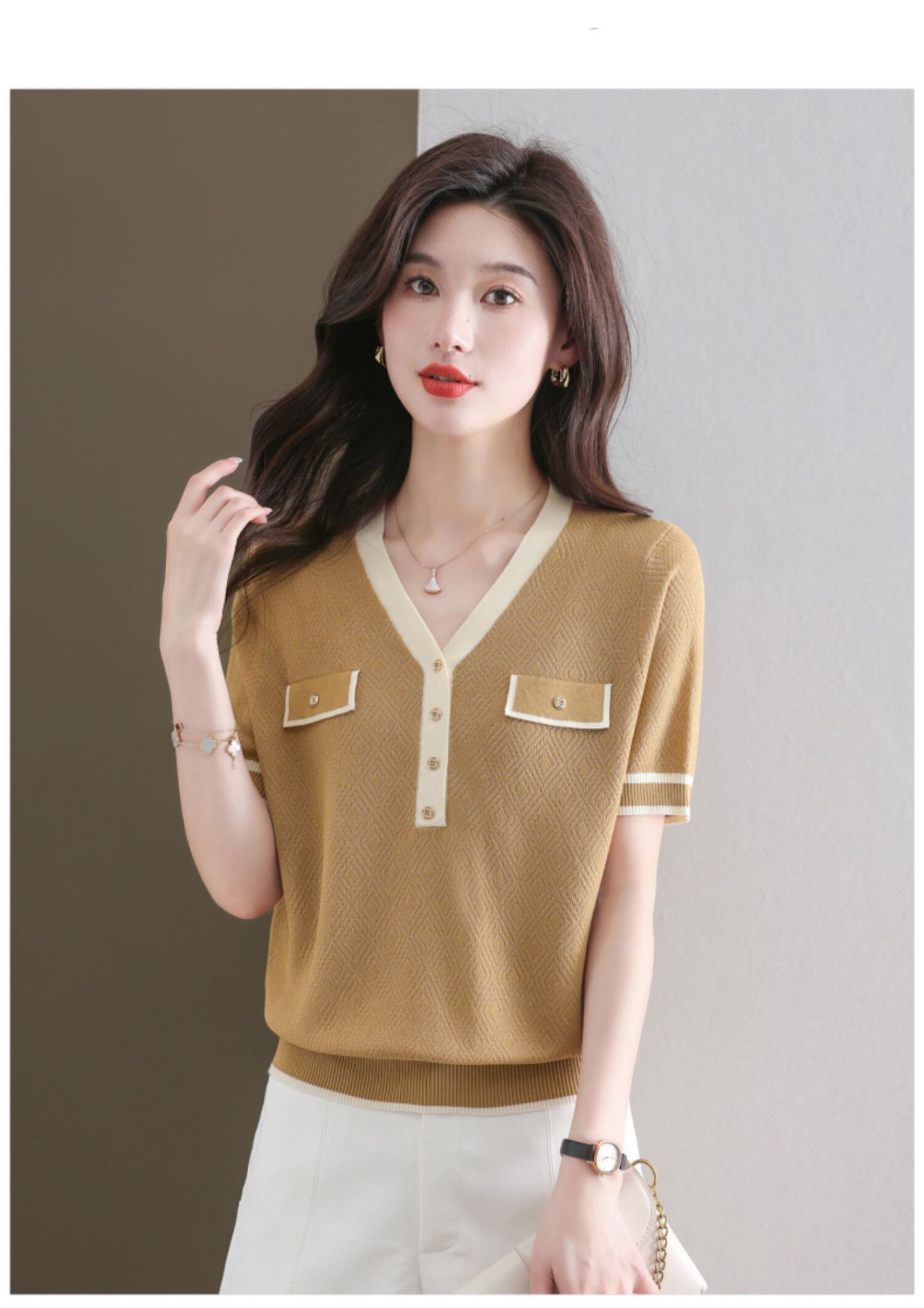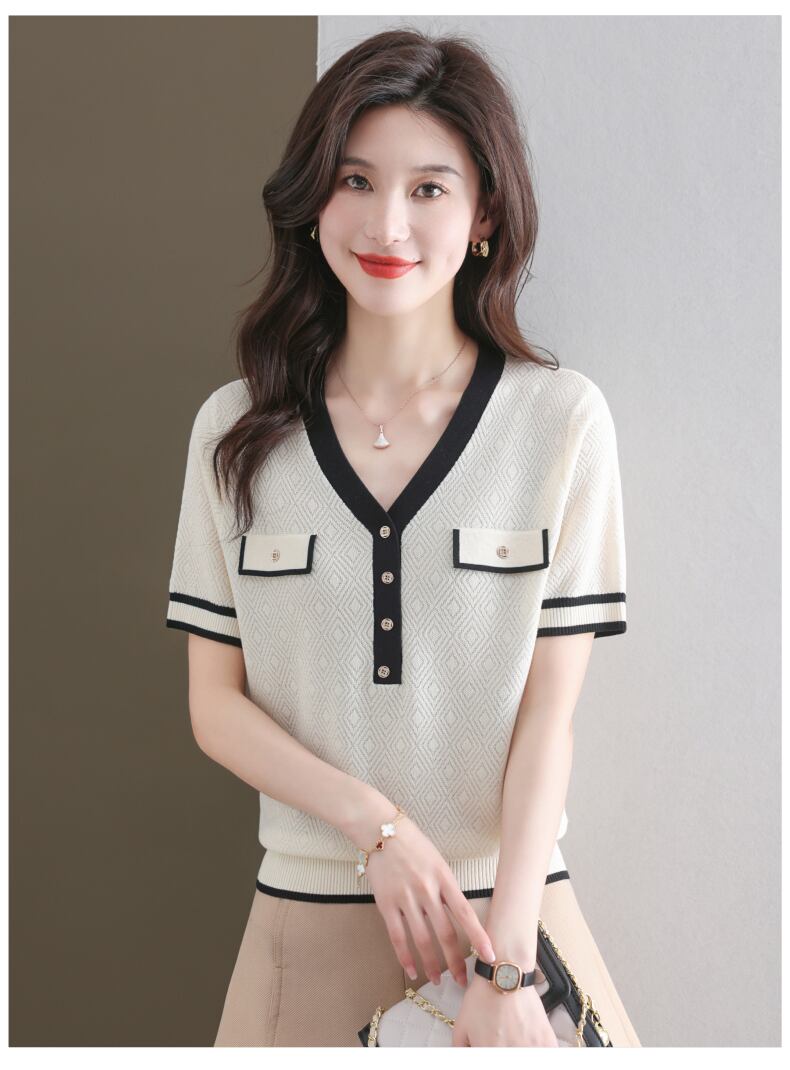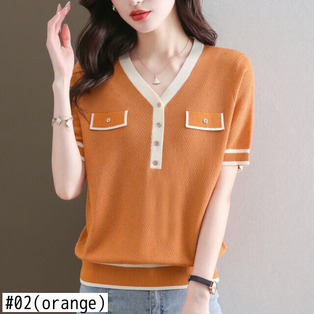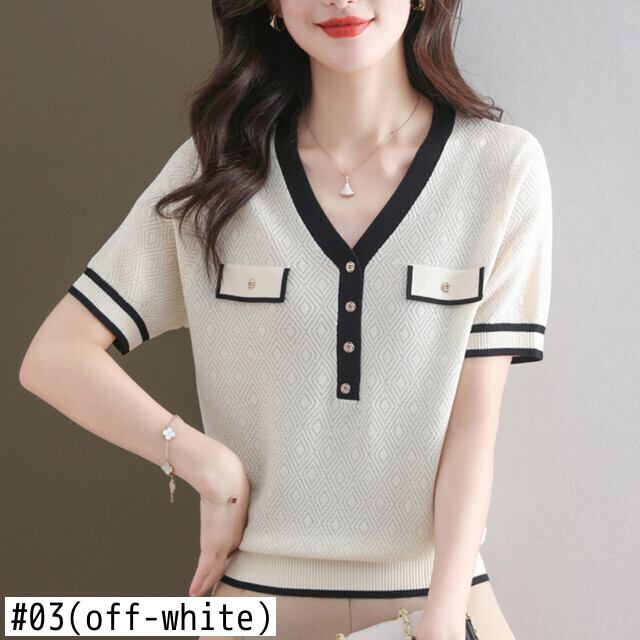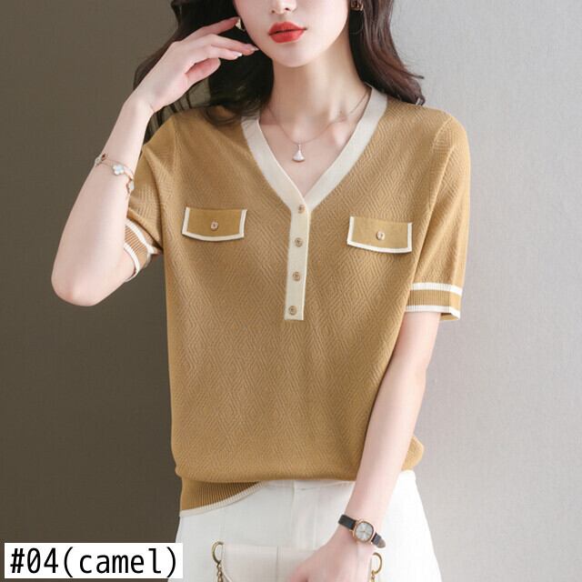 夏ニットトップス半袖 Tシャツレディース服アイス Tシャツ V ネック Tシャツ ショート ハーフスリーブ サマー 夏物 Vネック シルク