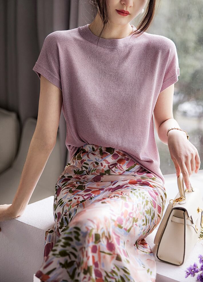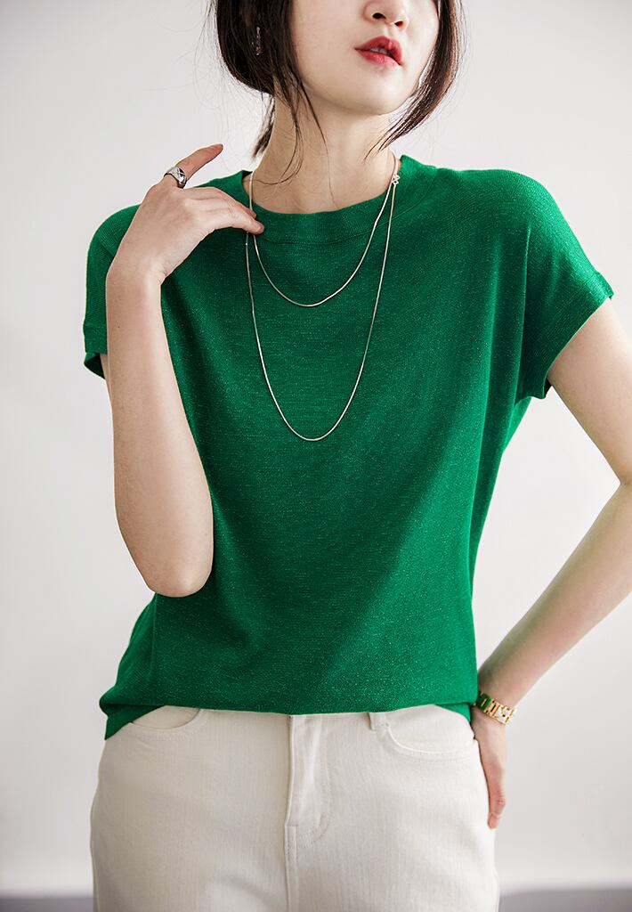 基本的 Tシャツ夏服ニットトップ薄い半袖 Tシャツ O ネックソリッド Tシャツ ショート ハーフスリーブ サマー 夏物 Oネック ソリッドカラー