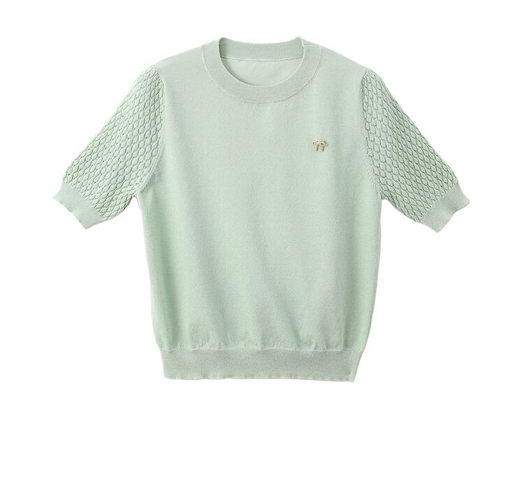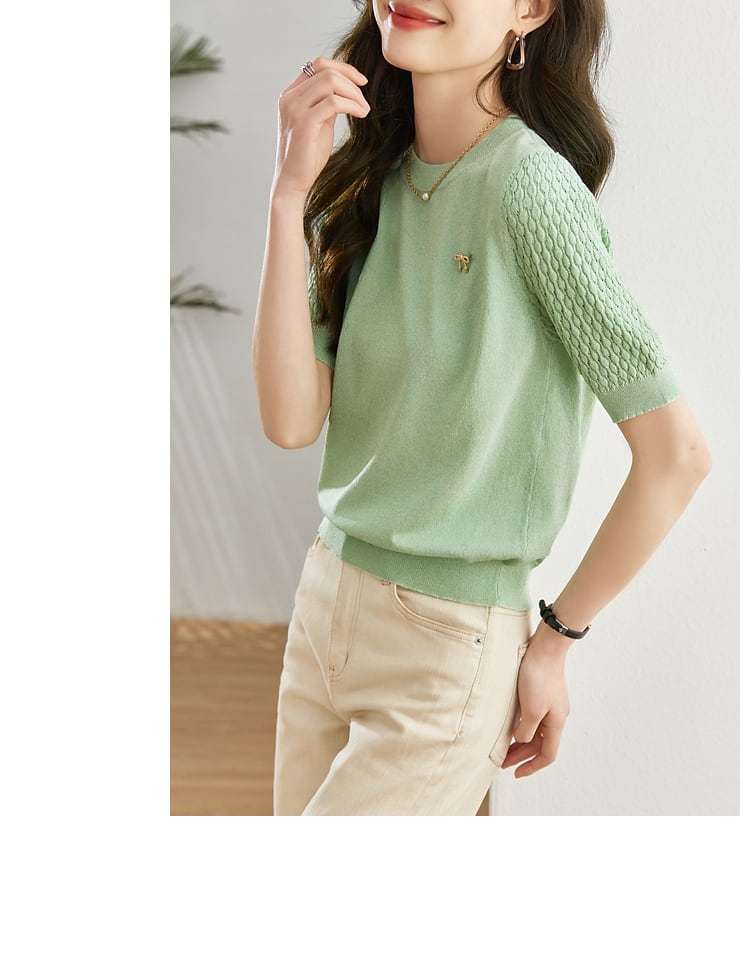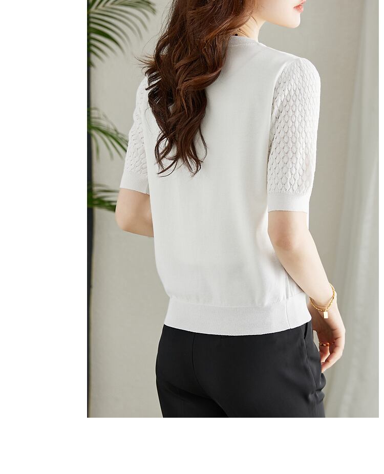 白緩い薄いニット Tシャツ夏 Tシャツ半袖 Tシャツ O ネック弾性トップ服 ショート ホワイト ハーフスリーブ エラスティック 伸縮 サマー 夏物 Oネック
