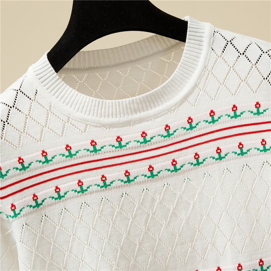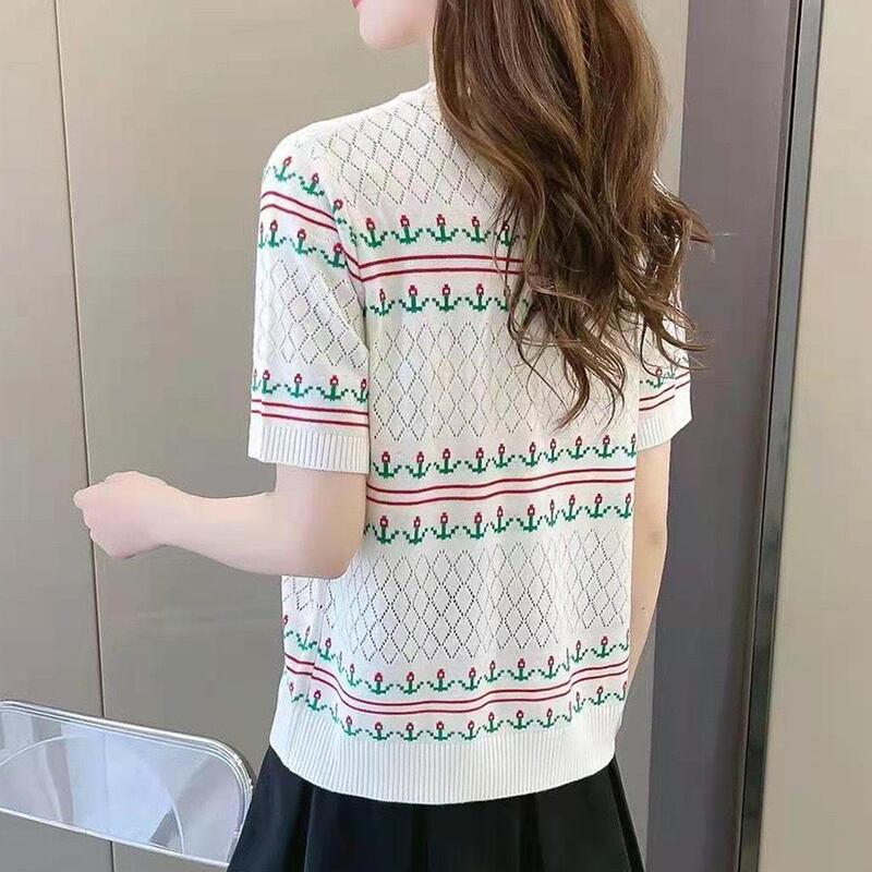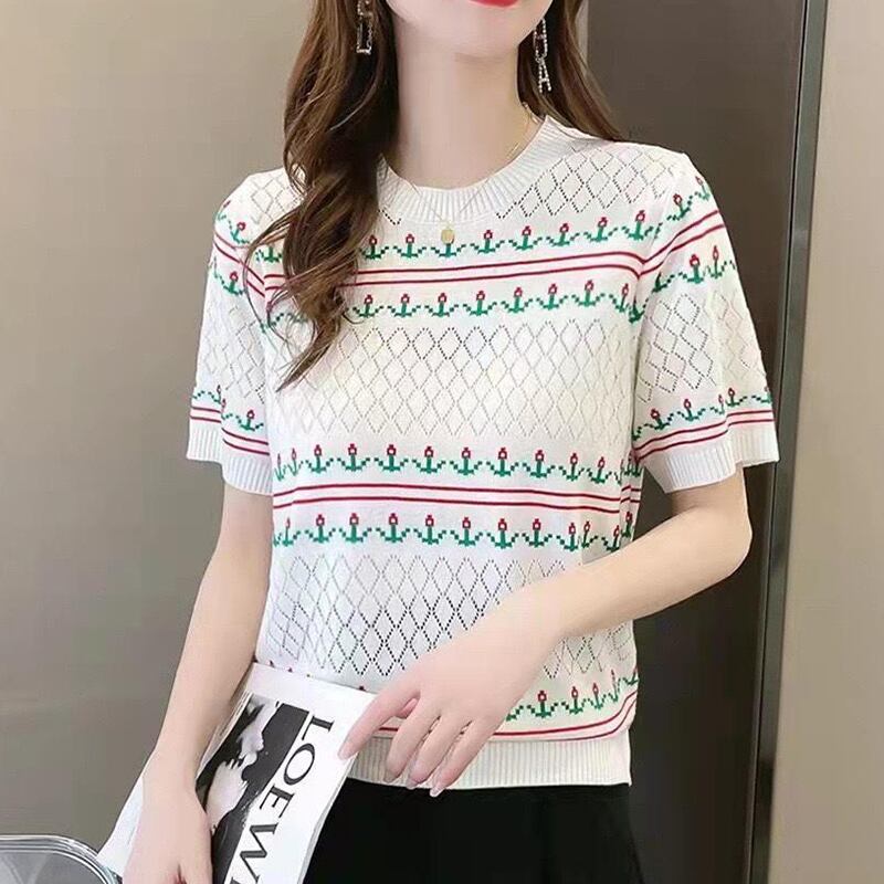 Tシャツ夏刺繍薄い半袖中空アウト Tシャツルーズ服ニットトップス ショート ハーフスリーブ サマー 夏物