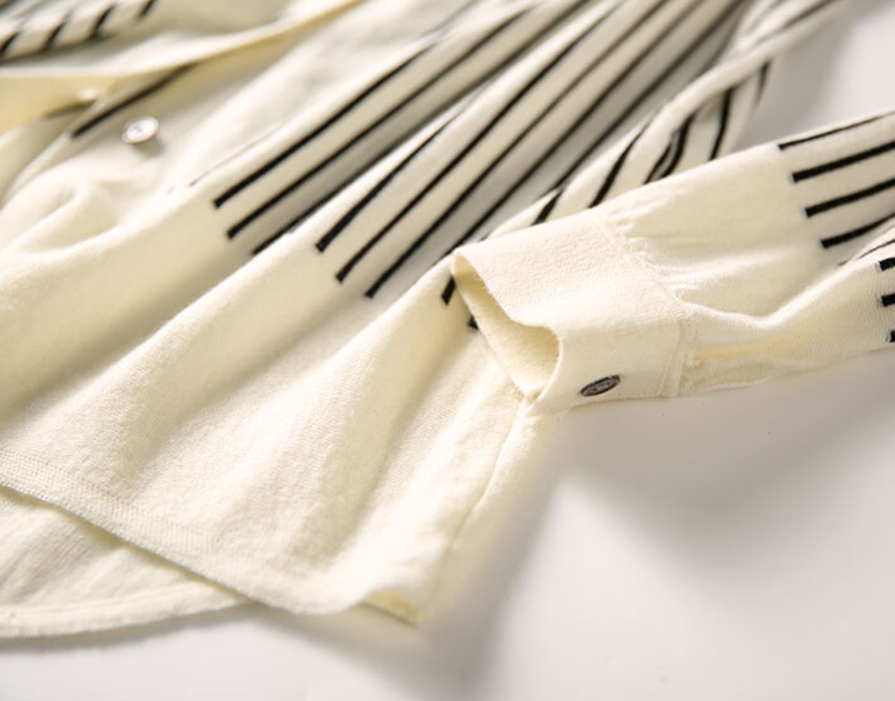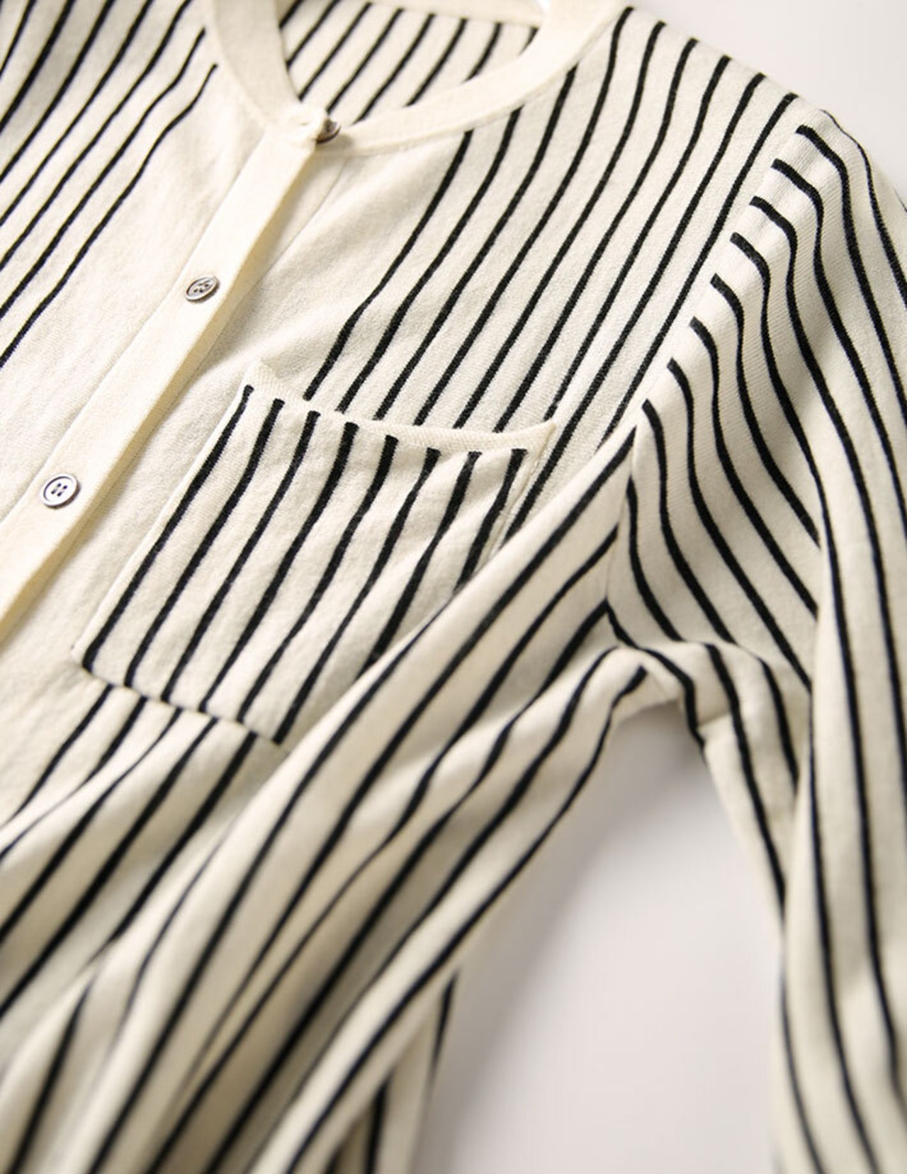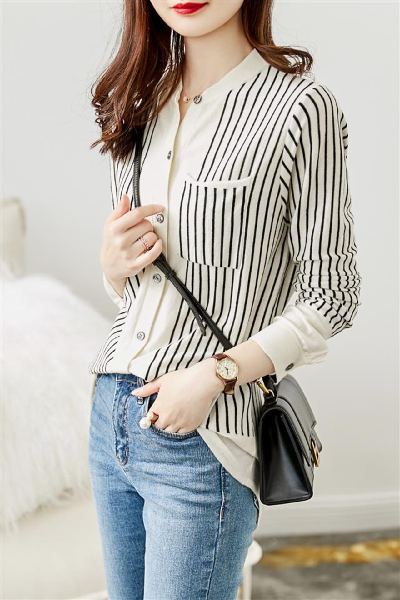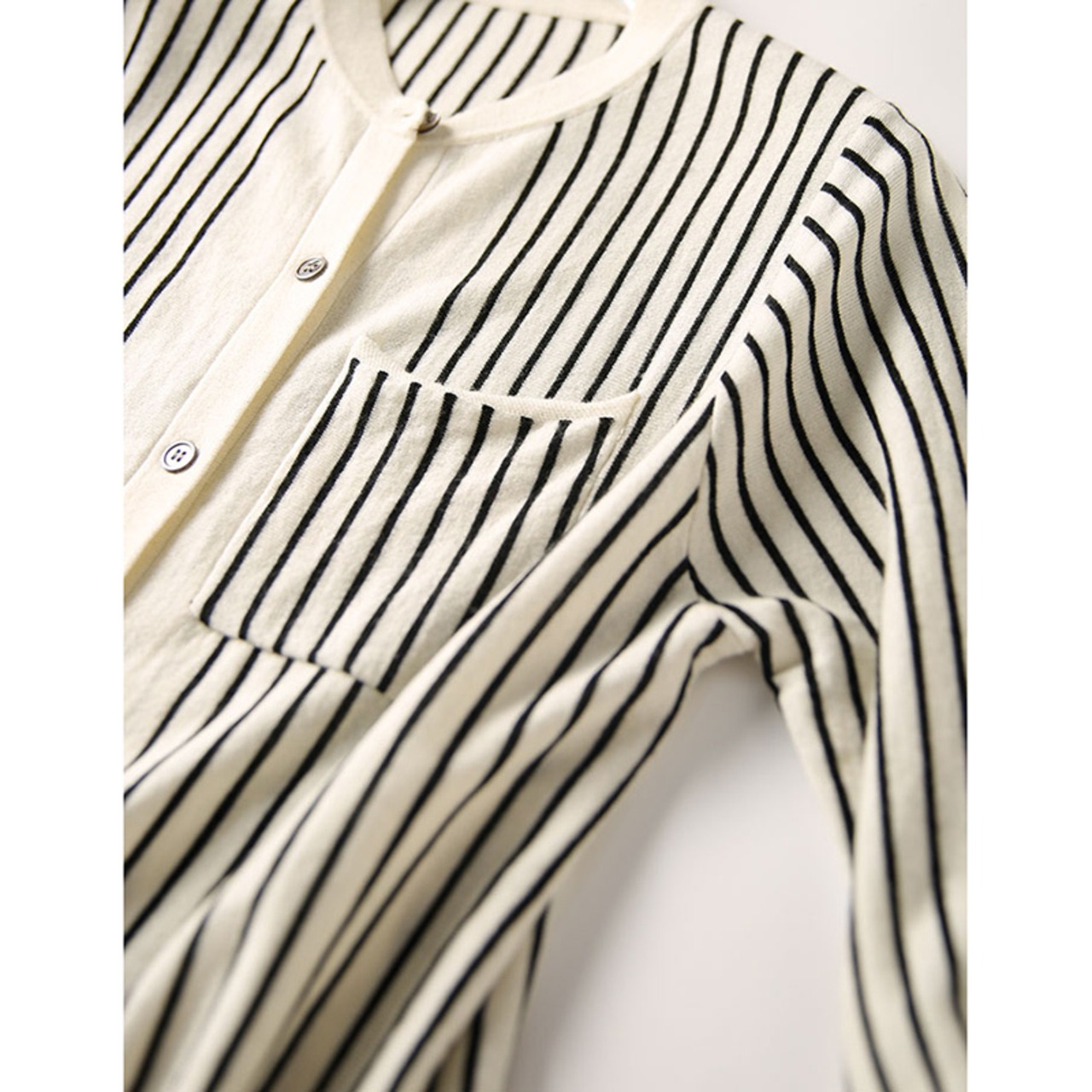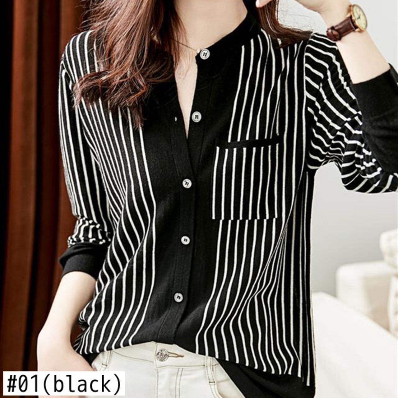 服ポケット長袖セーターボタンカーディガン秋冬ストライプニットトップス ロング オータム 秋物 ウィンター 冬物