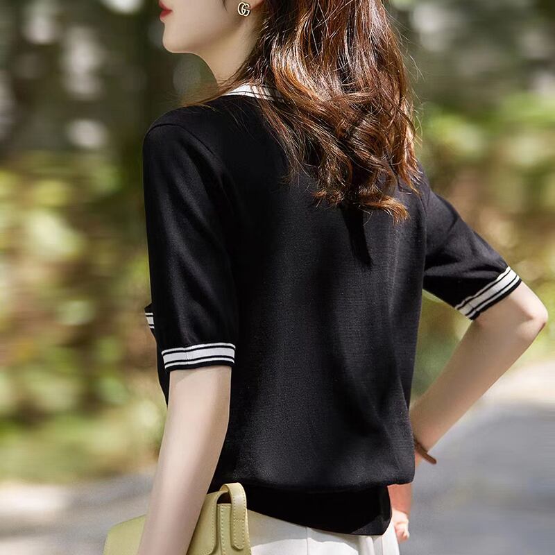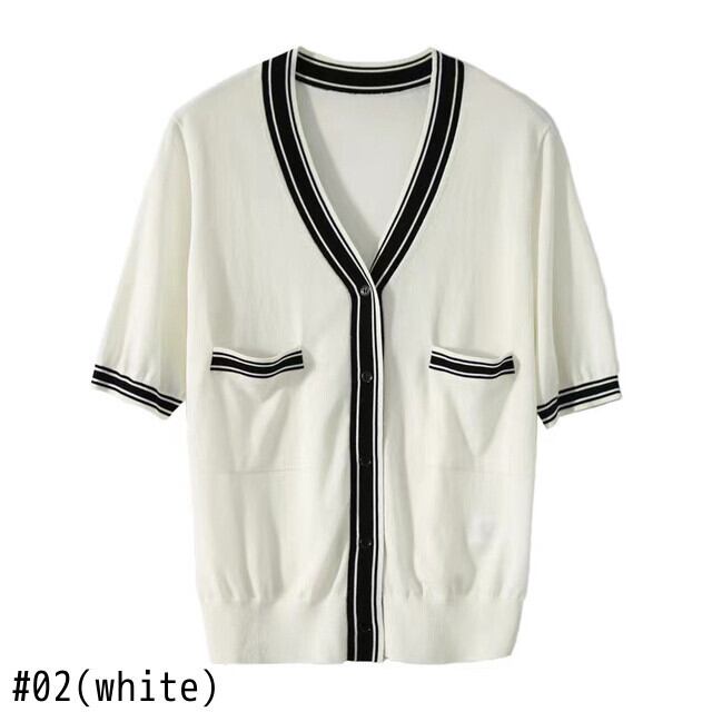 白黒カーディガンニットトップス夏服 Tシャツ V ネック半袖 Tシャツ Tシャツ ショート ホワイト ブラック ハーフスリーブ サマー 夏物 Vネック