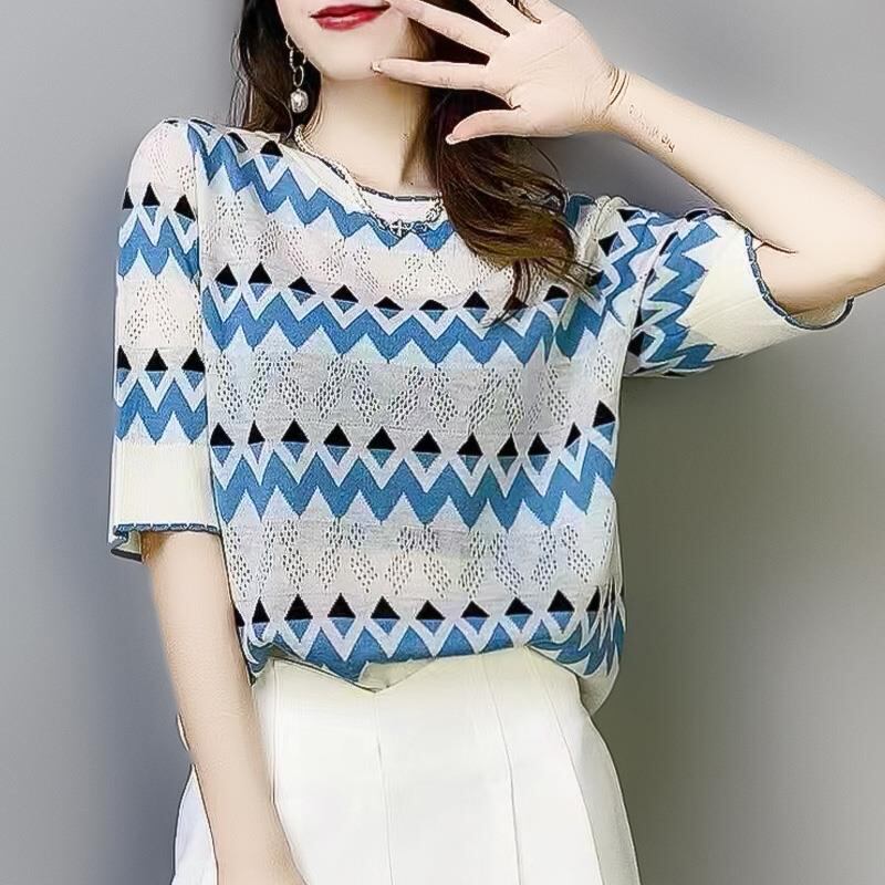 半袖 Tシャツニットトップス中空アウト O ネック Tシャツ Tシャツプルオーバー Camisetas デ ショート ハーフスリーブ Oネック