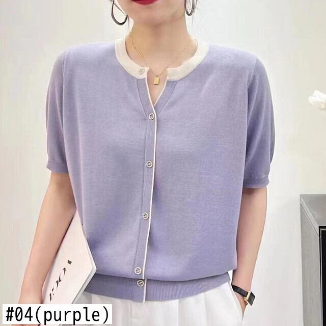 夏ストライプ Tシャツプルオーバー V ネック薄いアイスニット Tシャツ半袖ルーズトップス Tシャツ ショート ハーフスリーブ サマー 夏物 Vネック シルク