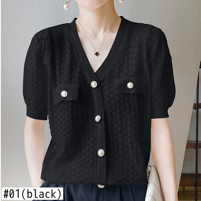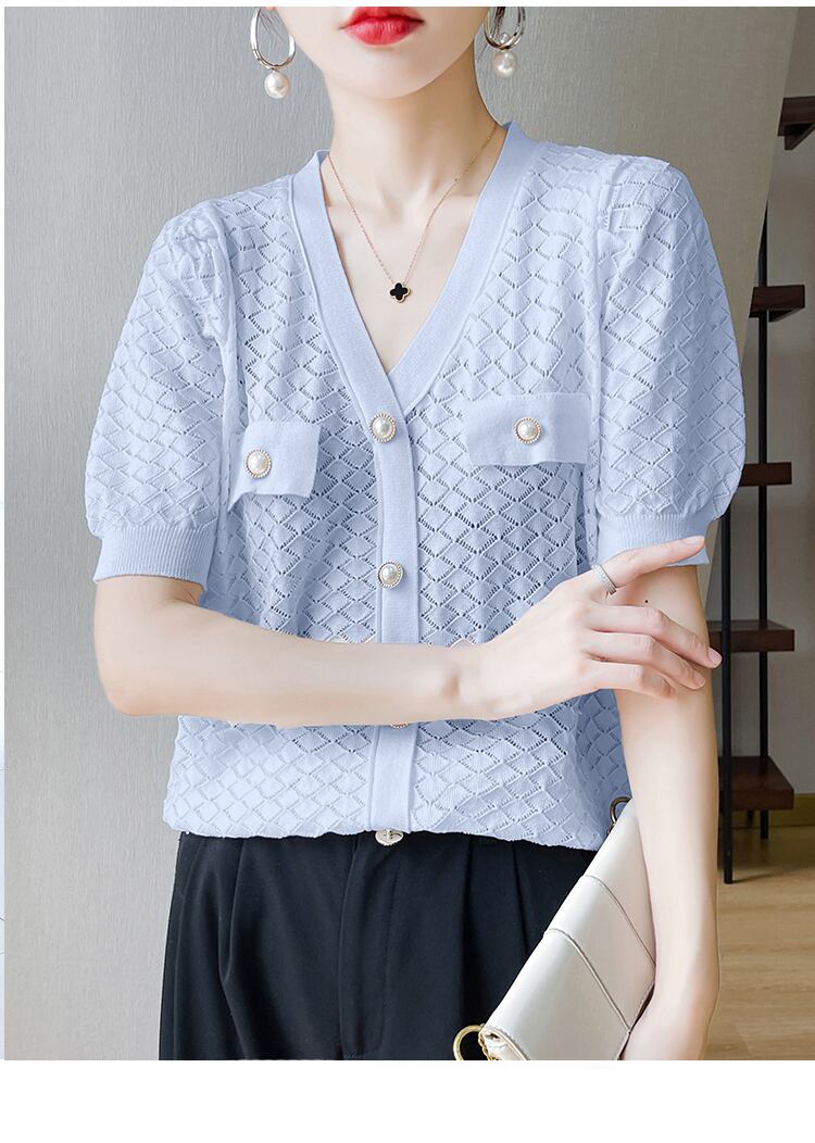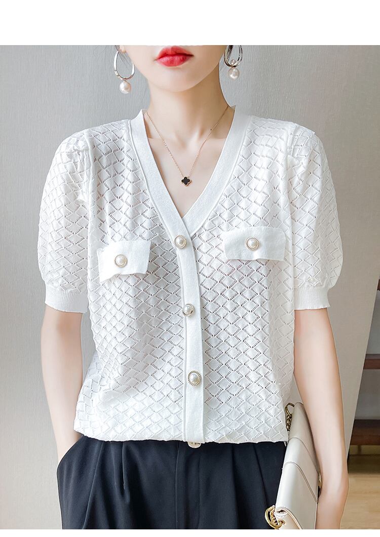 夏レディース半袖白 Tシャツ V ネックニットトップス中空アウト薄い Tシャツ ショート ホワイト ハーフスリーブ サマー 夏物 Vネック