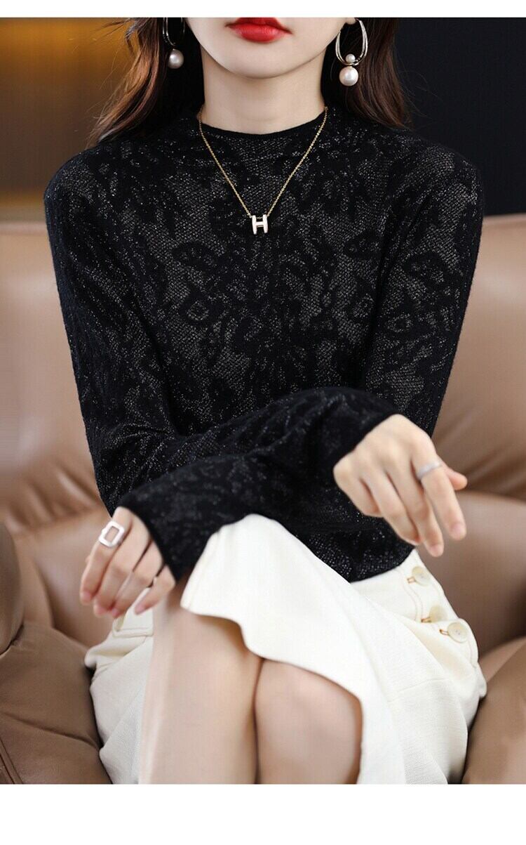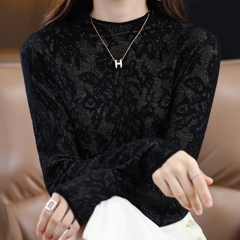 春と秋薄いプルオーバー中空アウトソフト黒セーター長袖ニットトップススリムレディース服プル ロング ブラック スプリング 春物 オータム 秋物