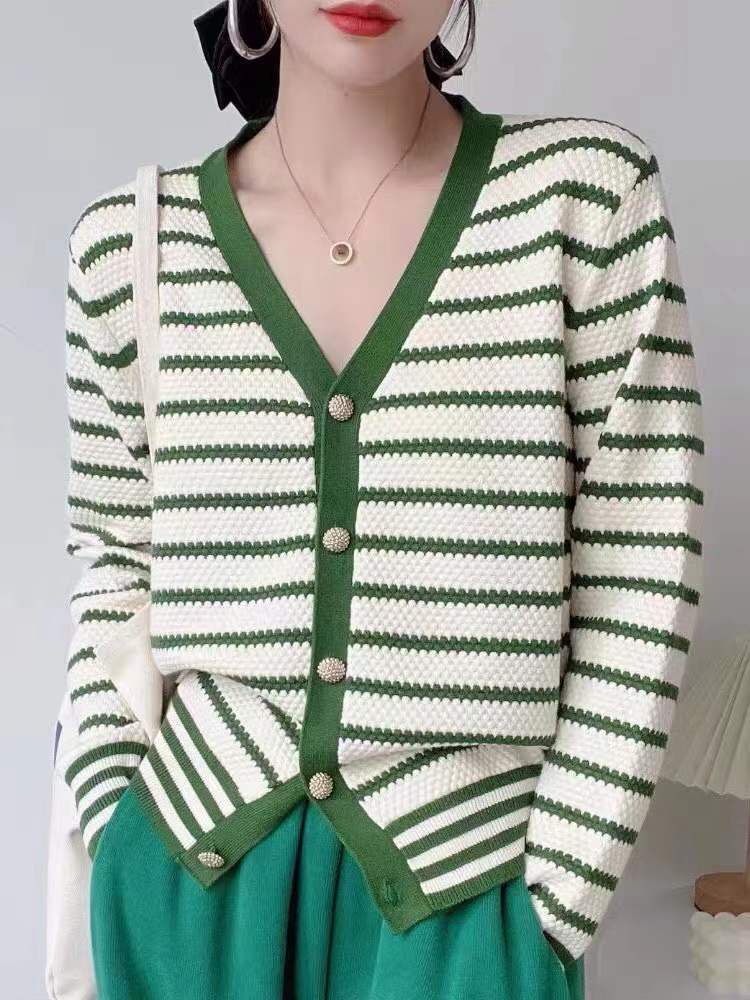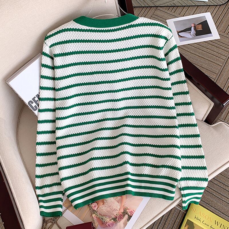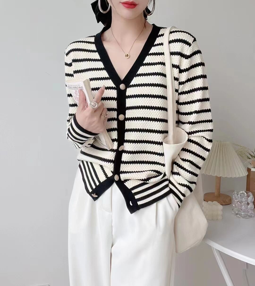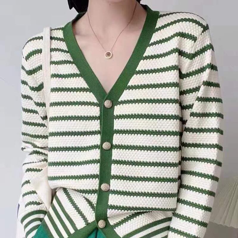 セーターズ デ モーダ秋冬レディースニットカーディガンストライプ長袖セータートップニット ロング オータム 秋物 ウィンター 冬物