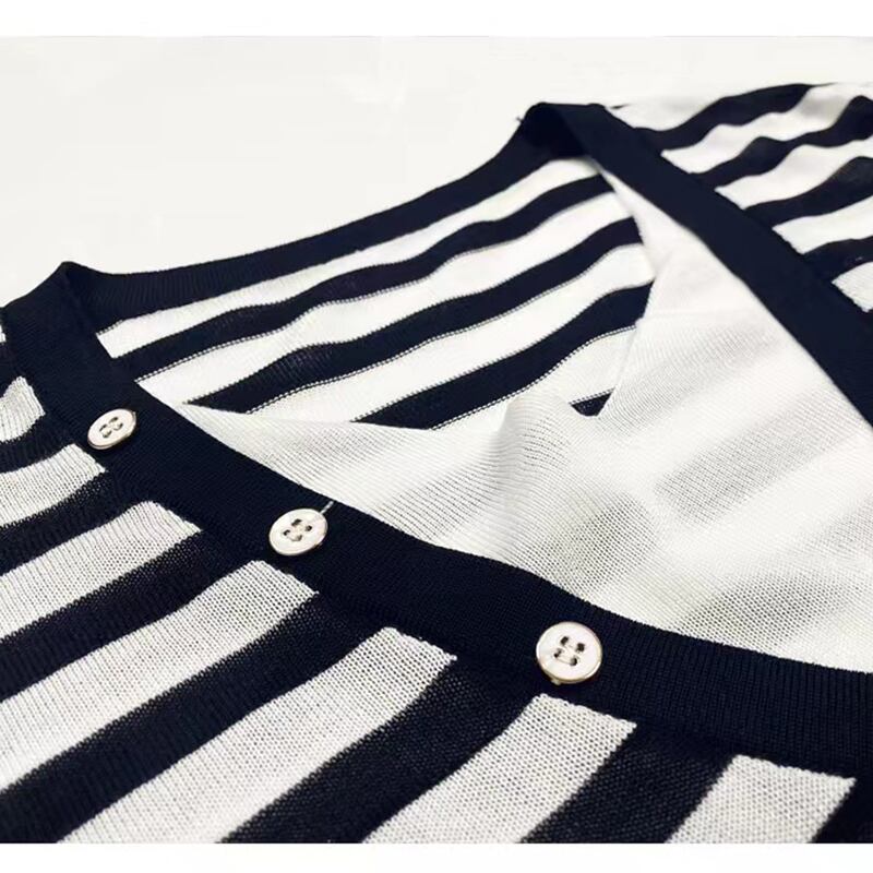 夏ストライプ半袖 Tシャツ V ネックアイスニット Tシャツプルオーバーボタントップ Tシャツ ショート ハーフスリーブ サマー 夏物 Vネック シルク