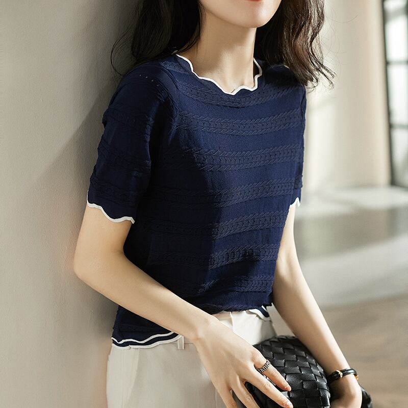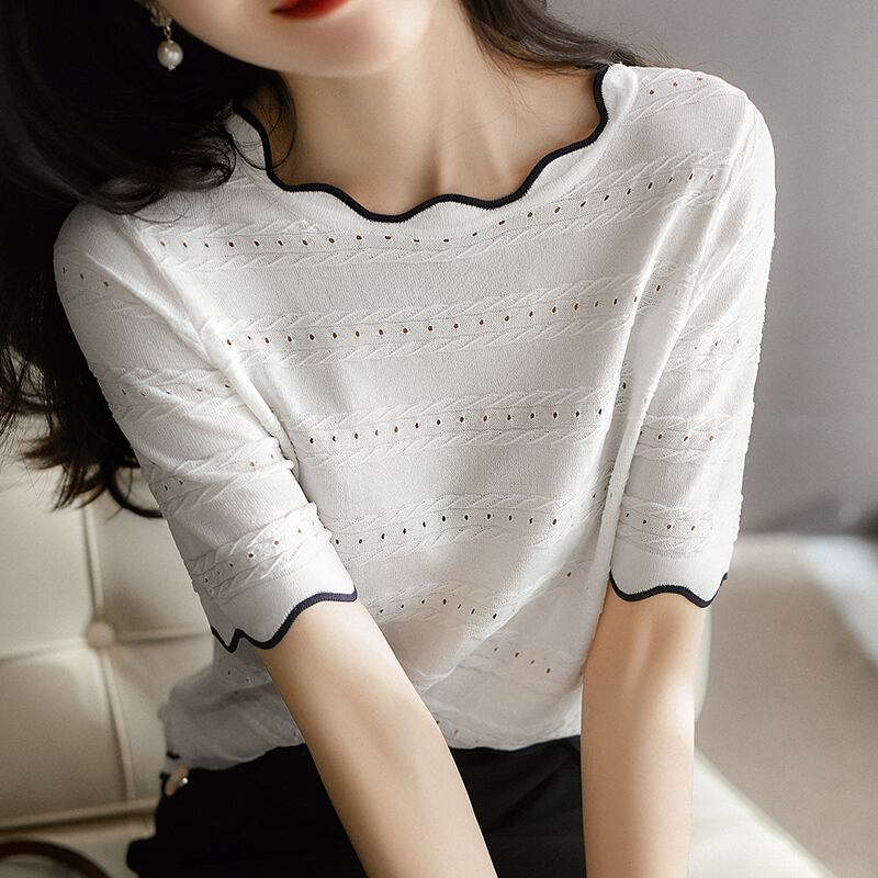 夏 Camisetas 白 Tシャツニットプルオーバートップス半袖 Tシャツ O ネックルーズ Tシャツ ショート ホワイト ハーフスリーブ サマー 夏物 Oネック