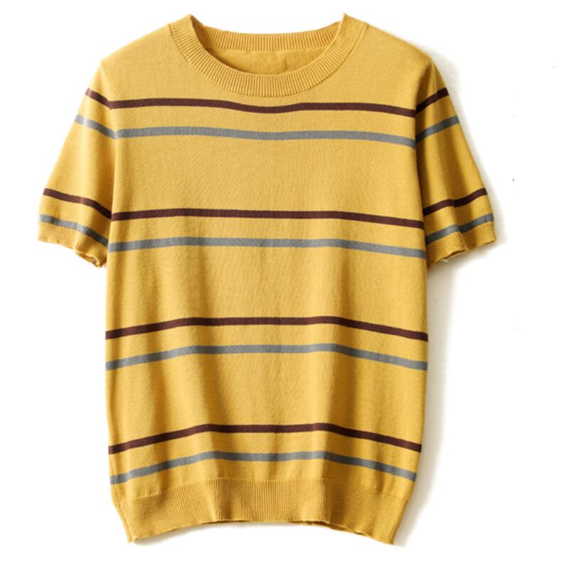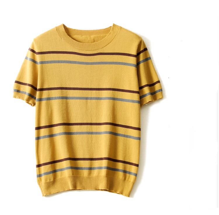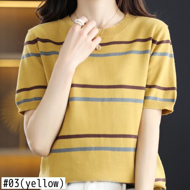 ピンク半袖 Tシャツ O ネックアイス Tシャツ Tシャツストライプルーズニットトップス夏 ショート ハーフスリーブ サマー 夏物 Oネック シルク