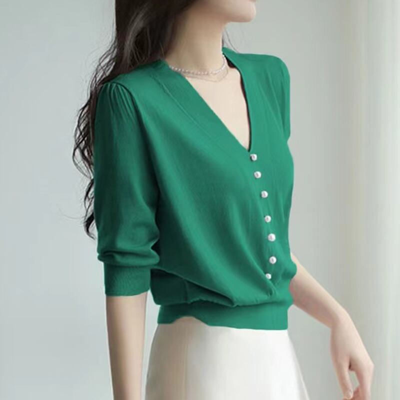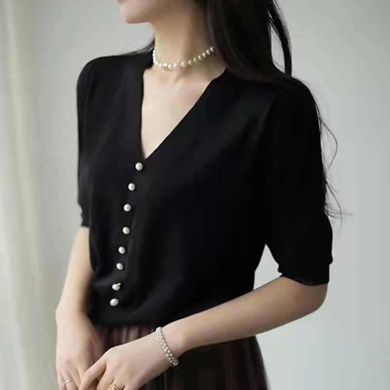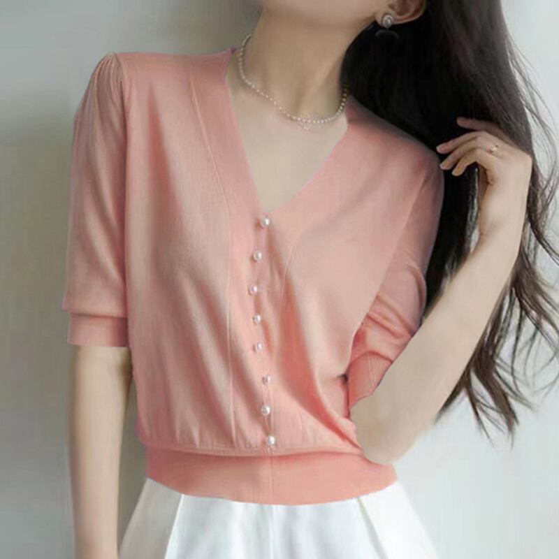 薄い V ネックニットトップス服白 Tシャツ半袖 Tシャツ Tシャツ夏 ショート ホワイト ハーフスリーブ サマー 夏物 Vネック