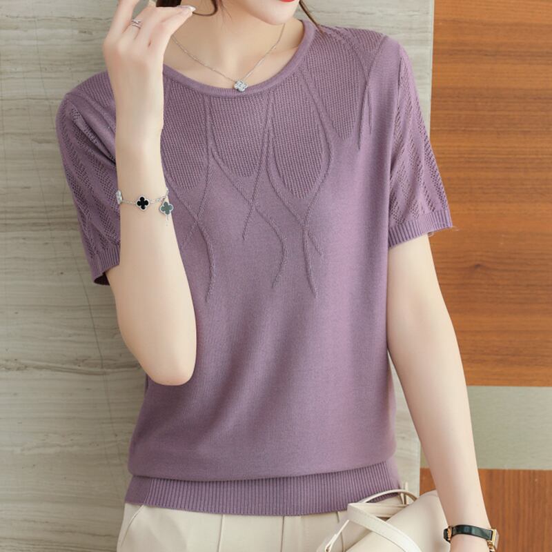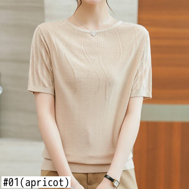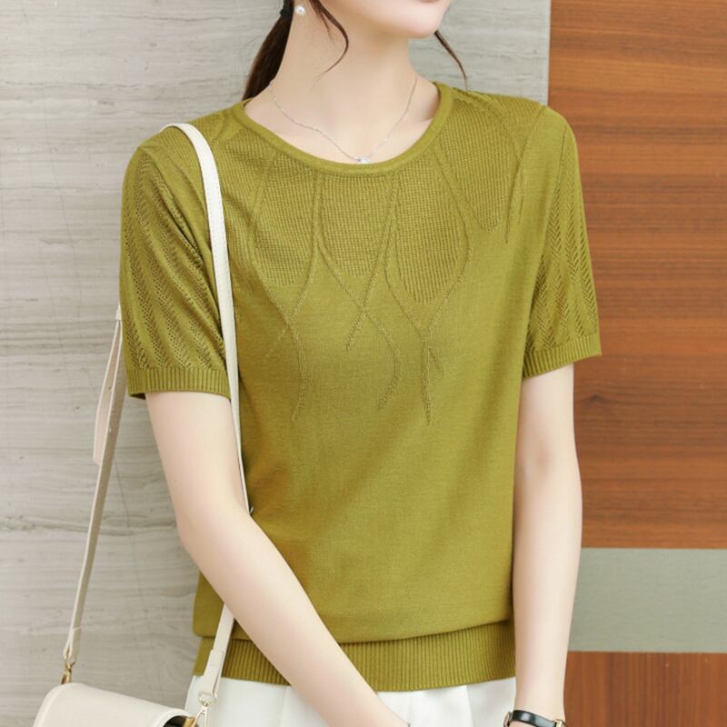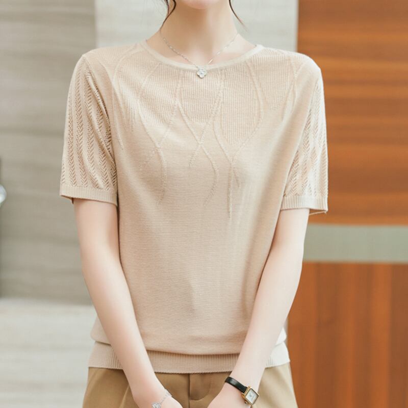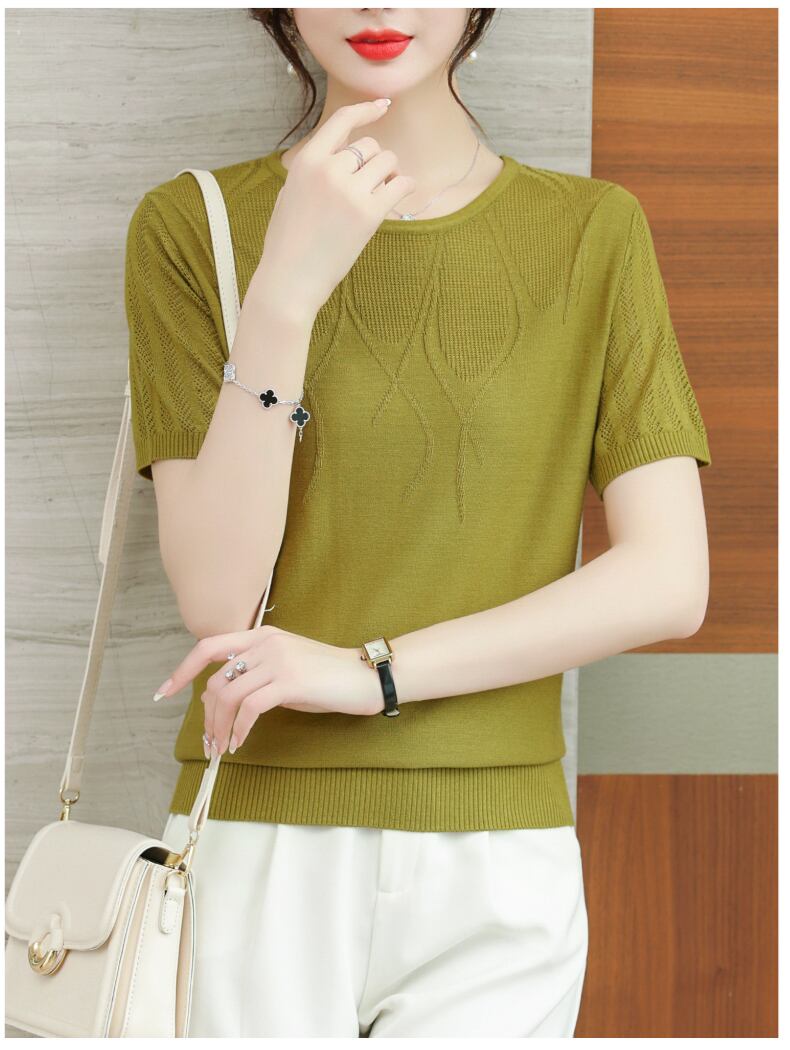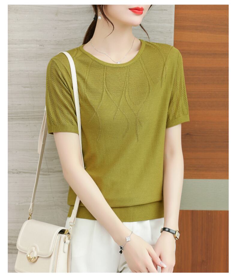 アイスニットトップ半袖 Tシャツ夏薄い Tシャツ Tシャツ O ネックレディース ショート ハーフスリーブ サマー 夏物 Oネック シルク ソリッドカラー
