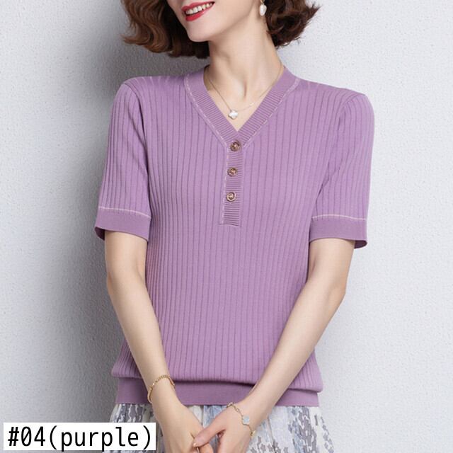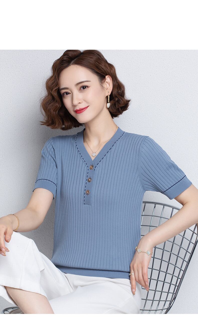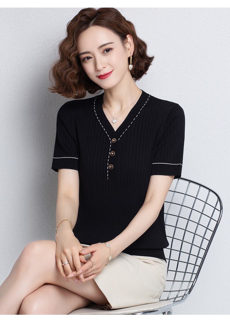夏 Tシャツ V ネック半袖 Tシャツニットトップアイス黒 Tシャツ服 ショート ブラック ハーフスリーブ サマー 夏物 Vネック シルク