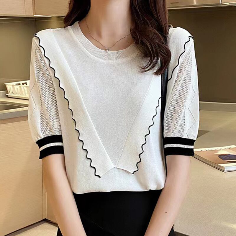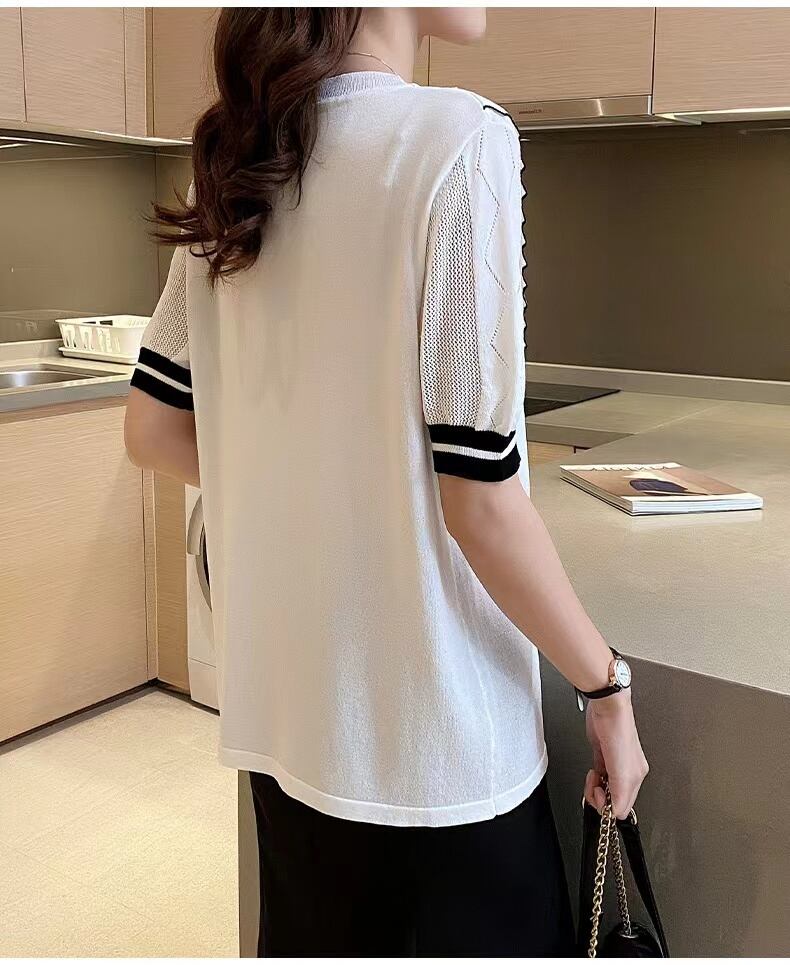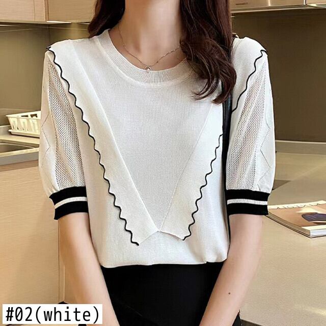 アイスニットトップス夏白半袖 Tシャツルーズ Tシャツ O ネックプルオーバー Tシャツ ショート ホワイト ハーフスリーブ サマー 夏物 Oネック シルク
