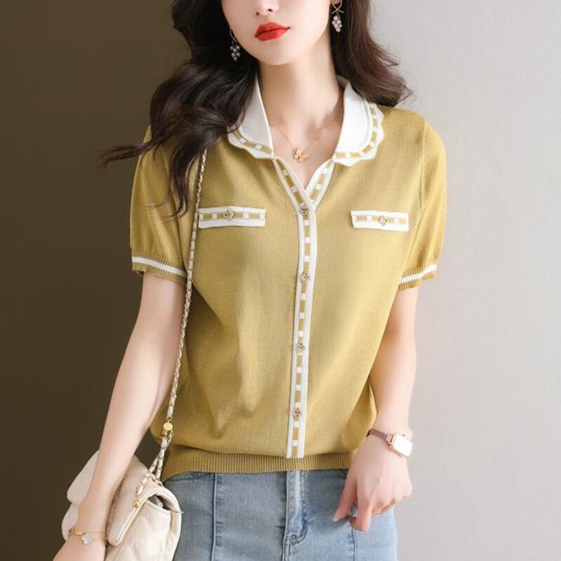 半袖 Tシャツ夏レディースニットトップスルーズ Tシャツアイス Tシャツ Camisetas ショート ハーフスリーブ サマー 夏物 シルク