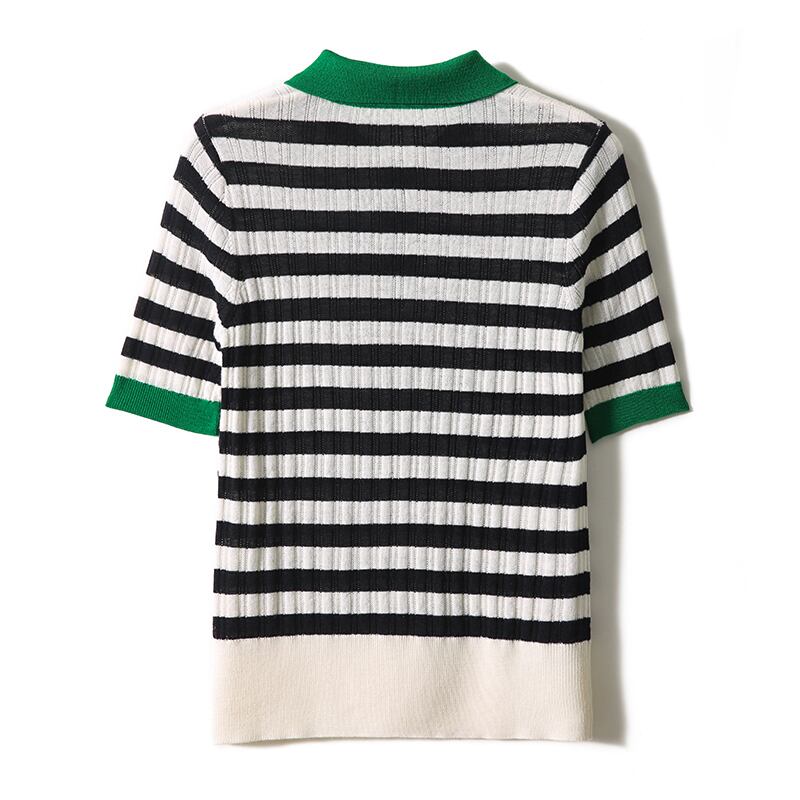 夏ターンダウン襟ストライプ Tシャツニットトップス半袖 Tシャツ Tシャツ ショート ハーフスリーブ サマー 夏物