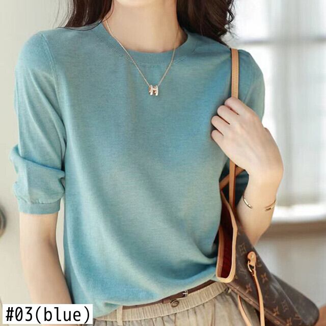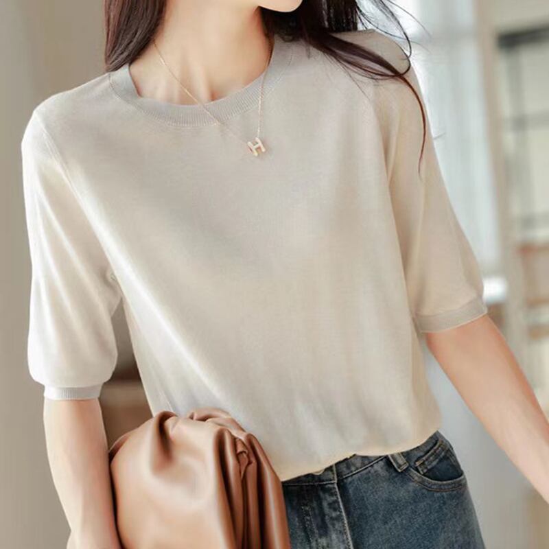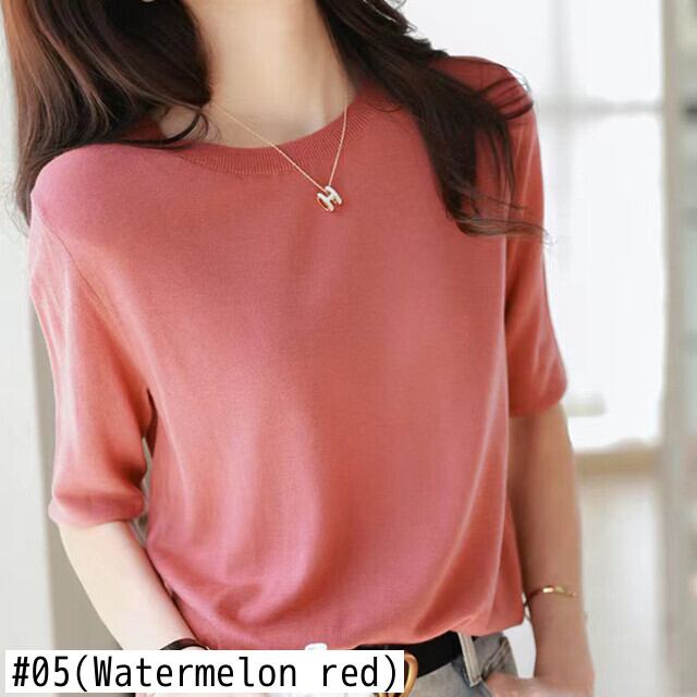 ベーシック Tシャツ夏服 O ネック Tシャツ半袖 Tシャツ薄いニットトップス ショート ハーフスリーブ サマー 夏物 Oネック ソリッドカラー