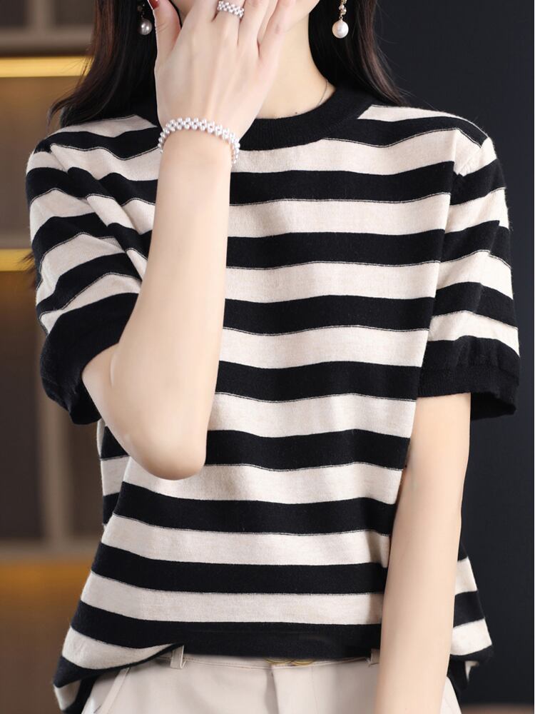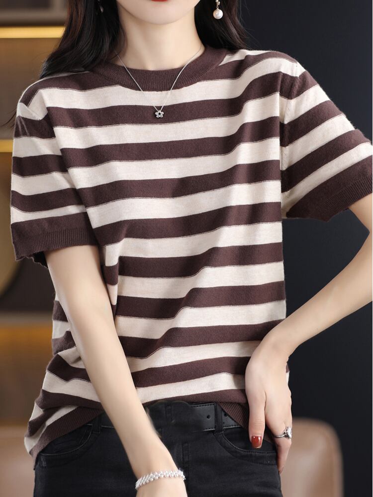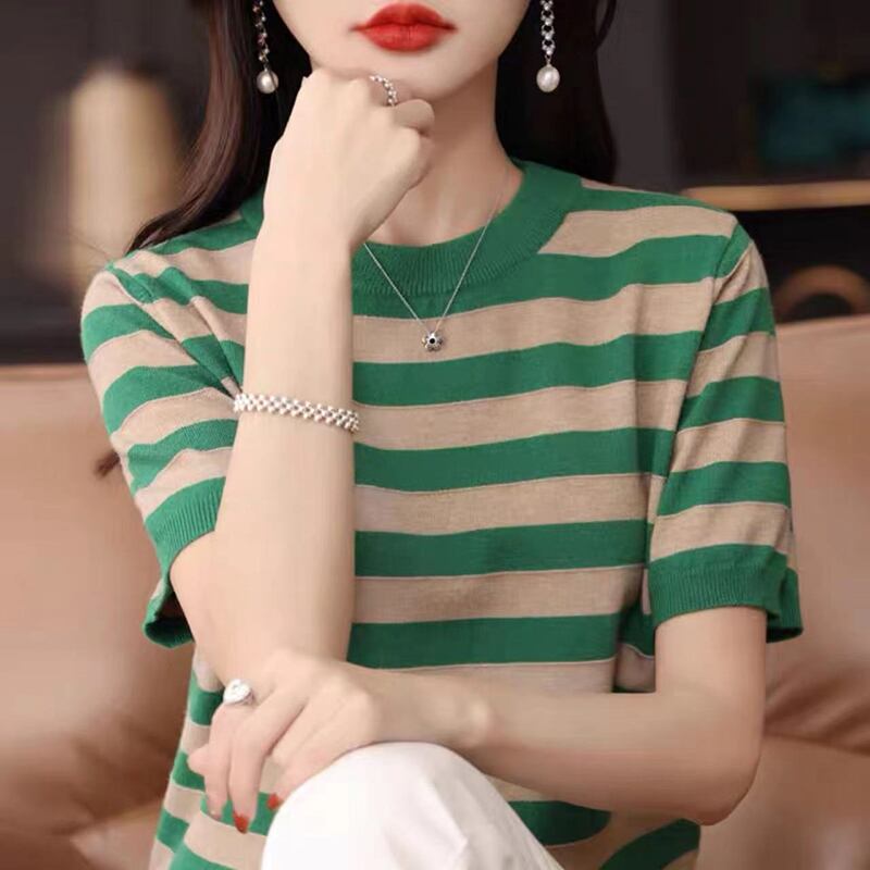 ストライプ半袖 Tシャツ夏 Tシャツレディース O ネックニットトップス Tシャツ Camisetas ショート ハーフスリーブ サマー 夏物 Oネック