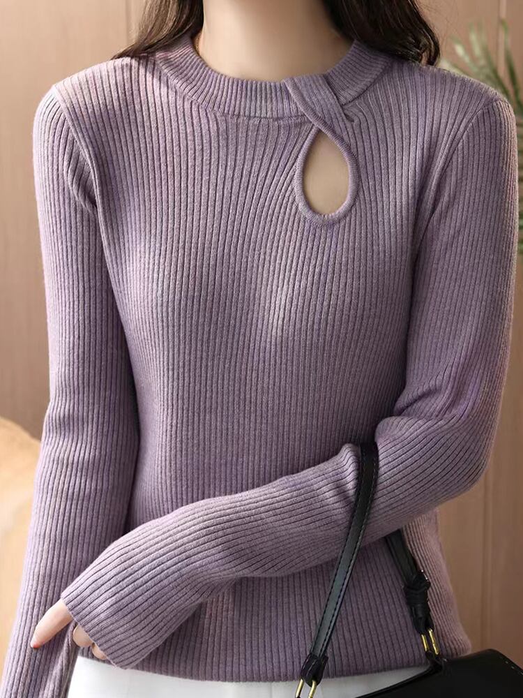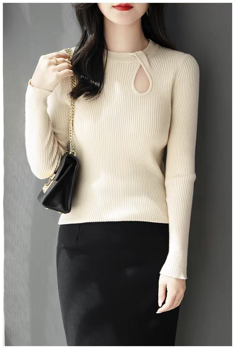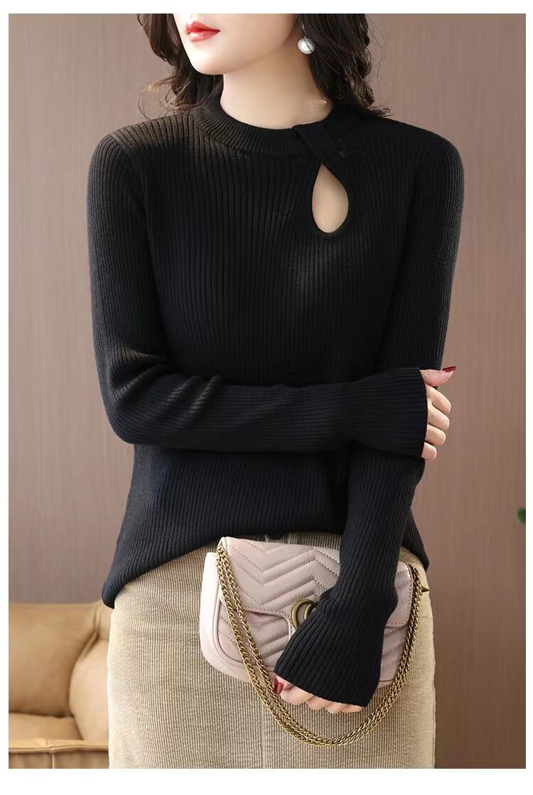 中空アウトセーター長袖黒ニットプルオーバー O ネックスリムトップスセーター秋冬服 ロング ブラック オータム 秋物 ウィンター 冬物 Oネック
