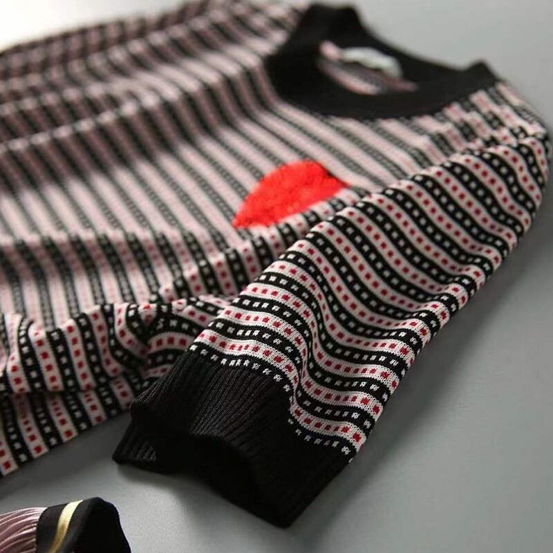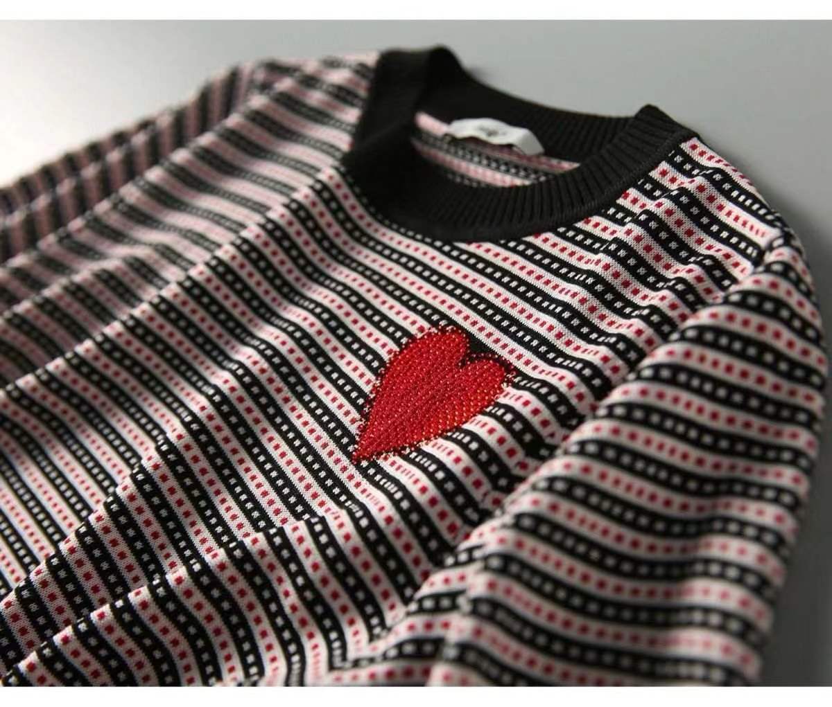 Camisetas 夏アイス Tシャツ薄いストライプ愛半袖 Tシャツ O ネックニットトップスレディース ショート ハーフスリーブ サマー 夏物 Oネック シルク