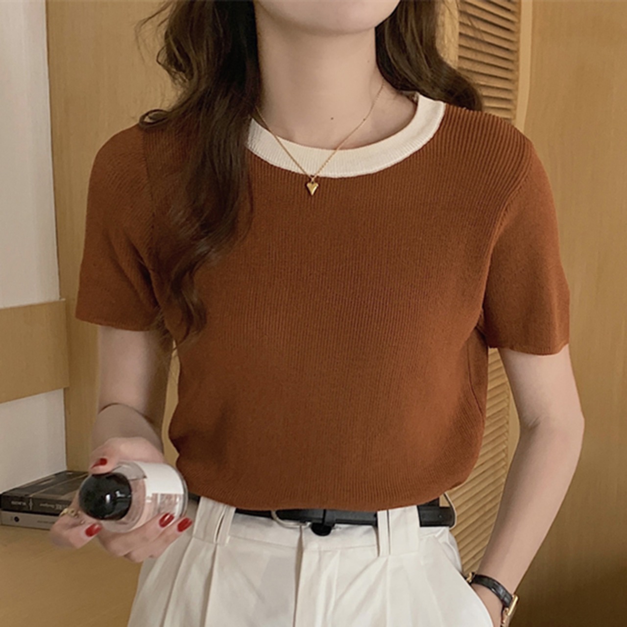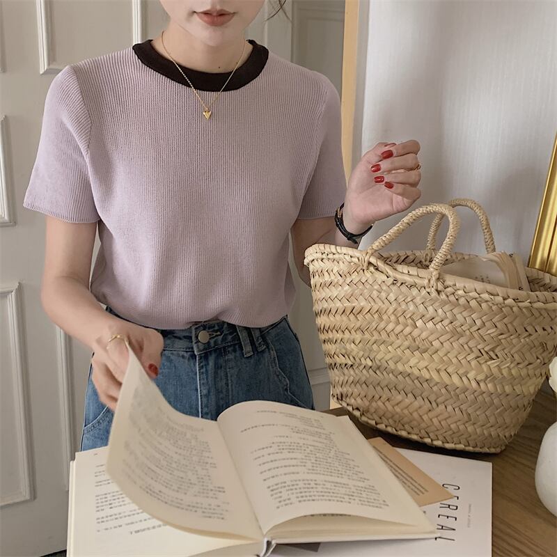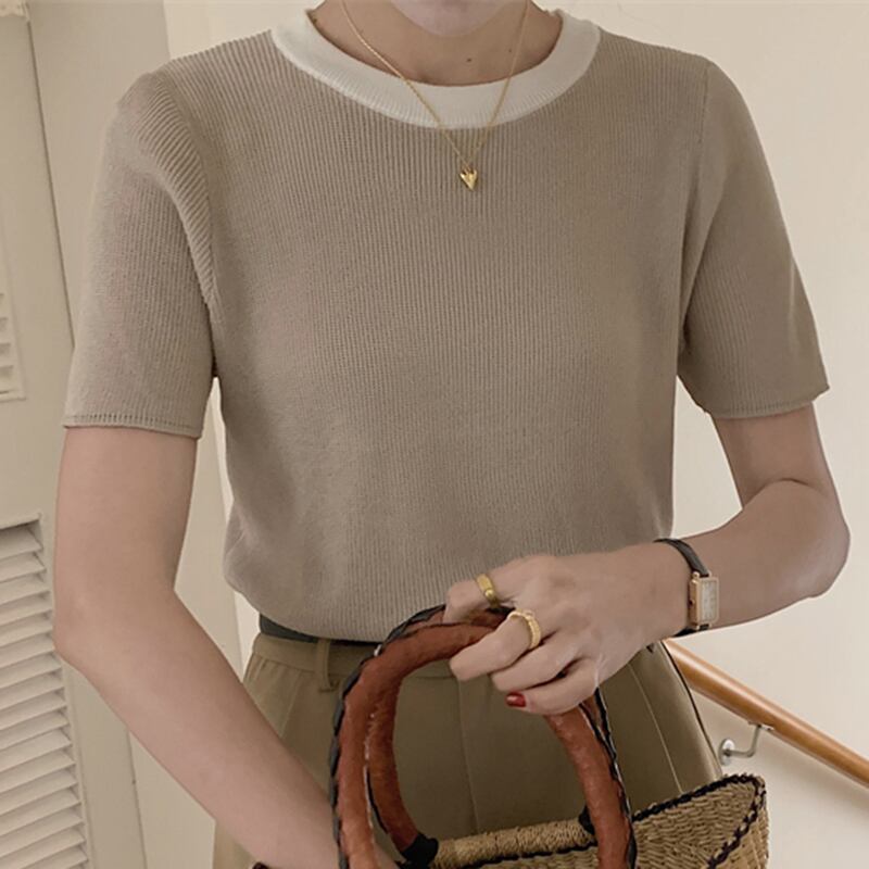 夏 Tシャツ O ネック半袖 Tシャツニットトップベーシック Tシャツ Camisetas デ ショート ハーフスリーブ サマー 夏物 Oネック