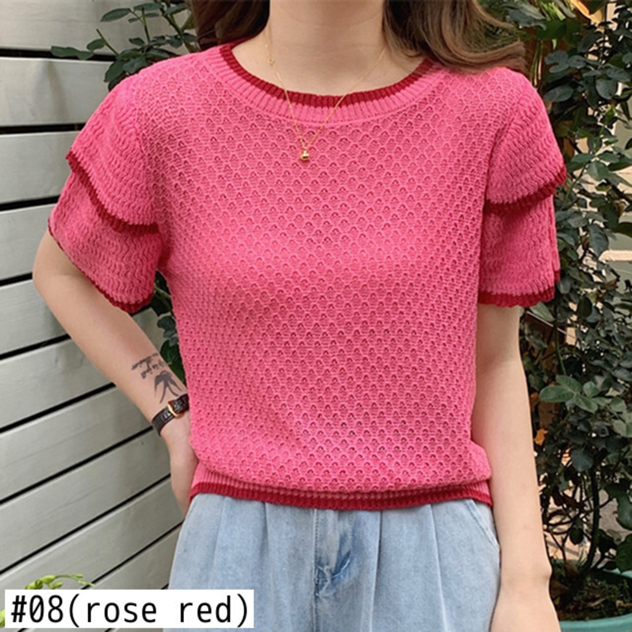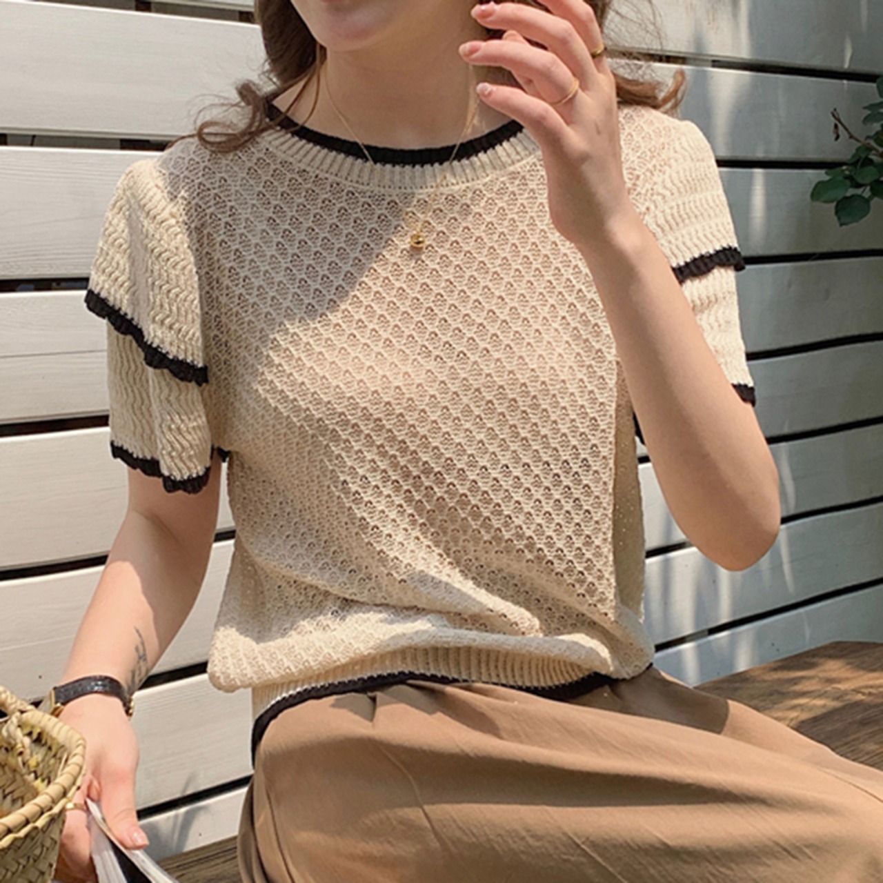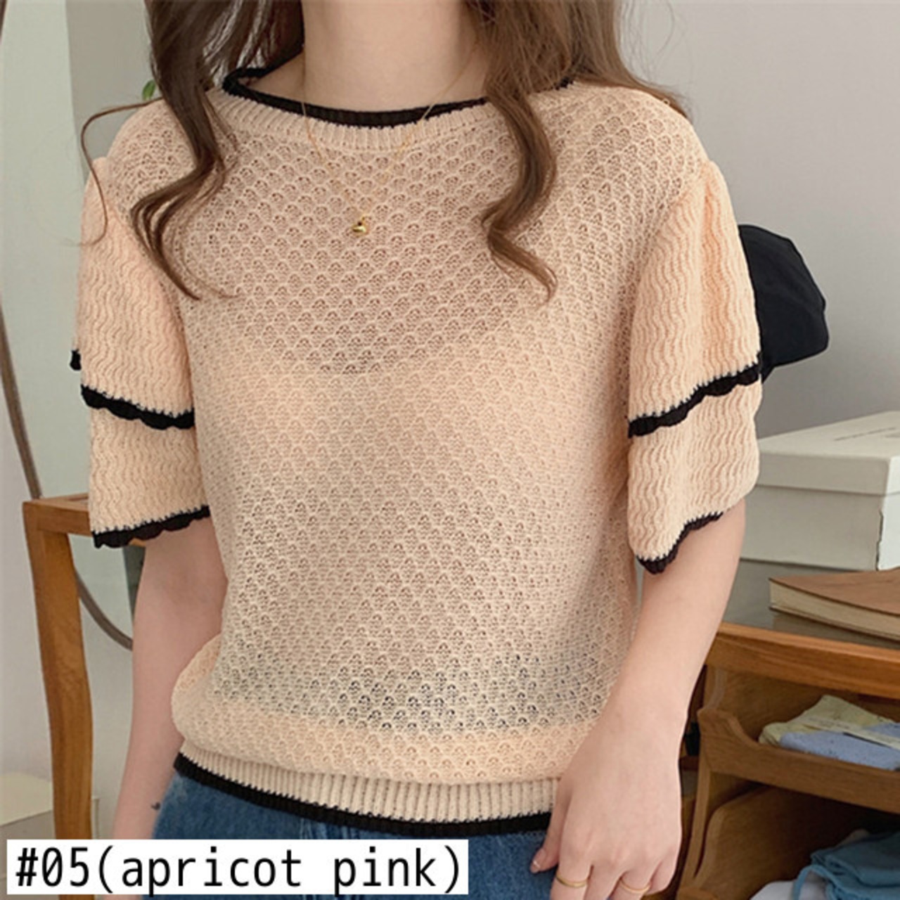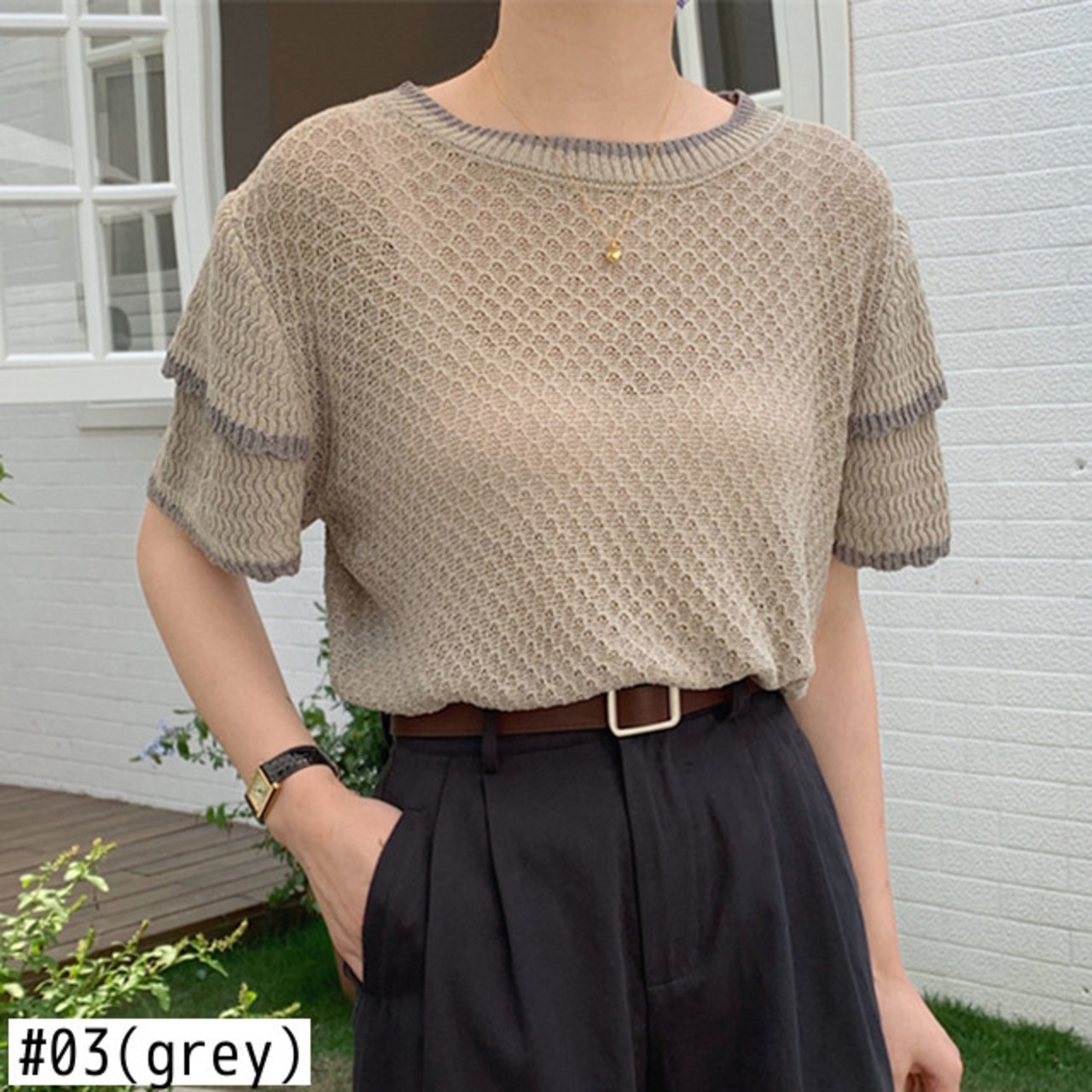 夏ニット Tシャツスタイルトップス半袖 Tシャツ薄型 Tシャツレディース ショート ハーフスリーブ サマー 夏物