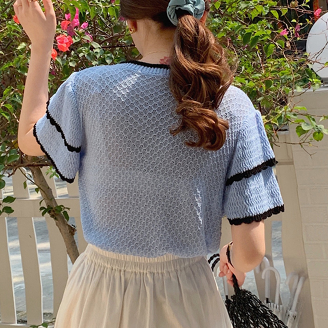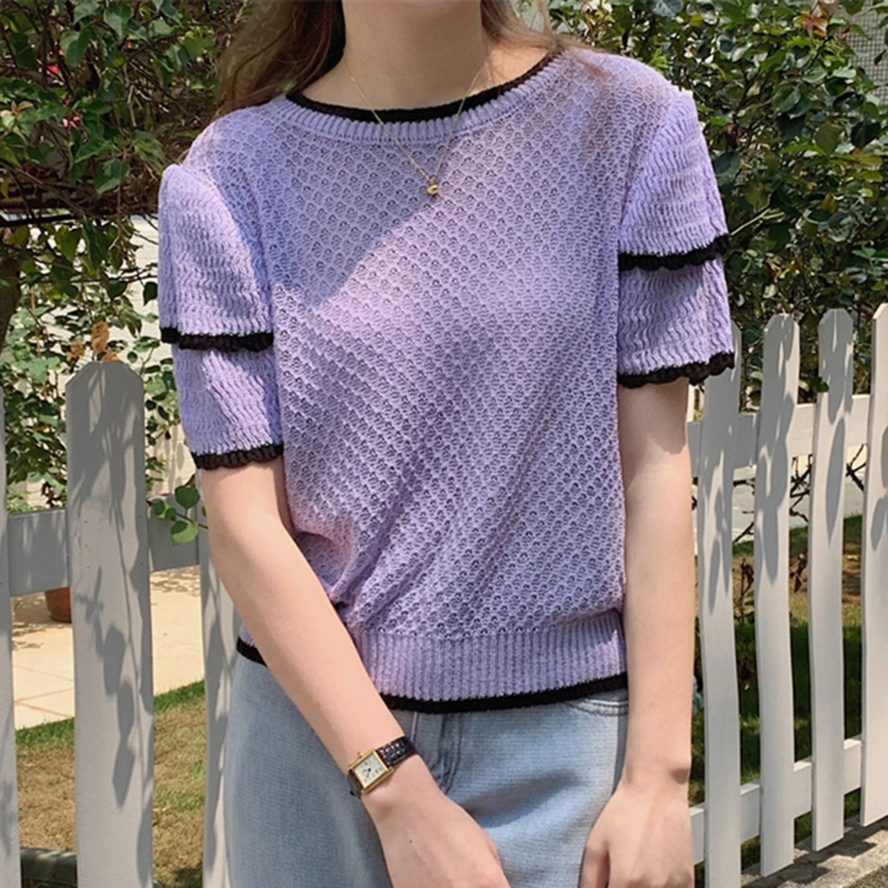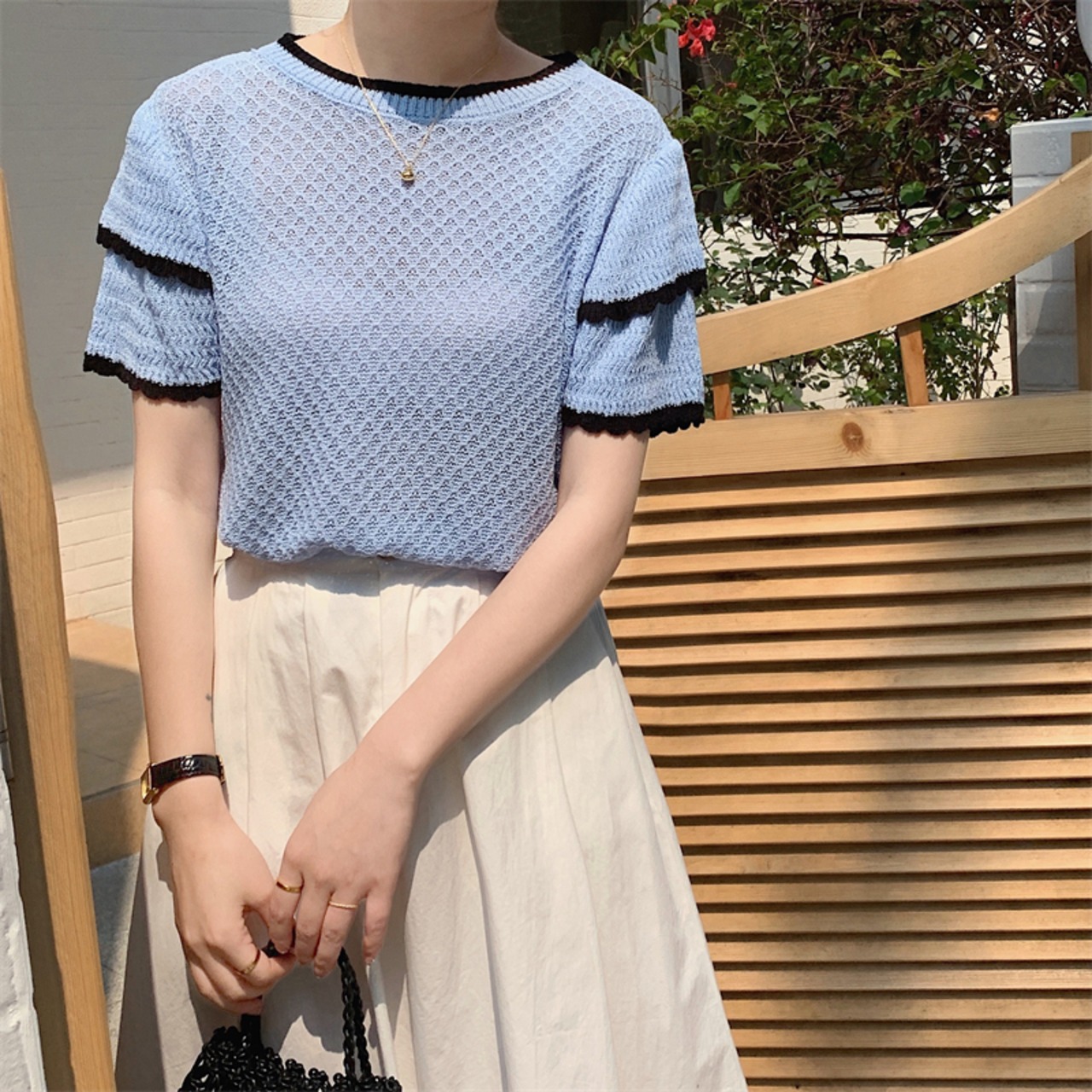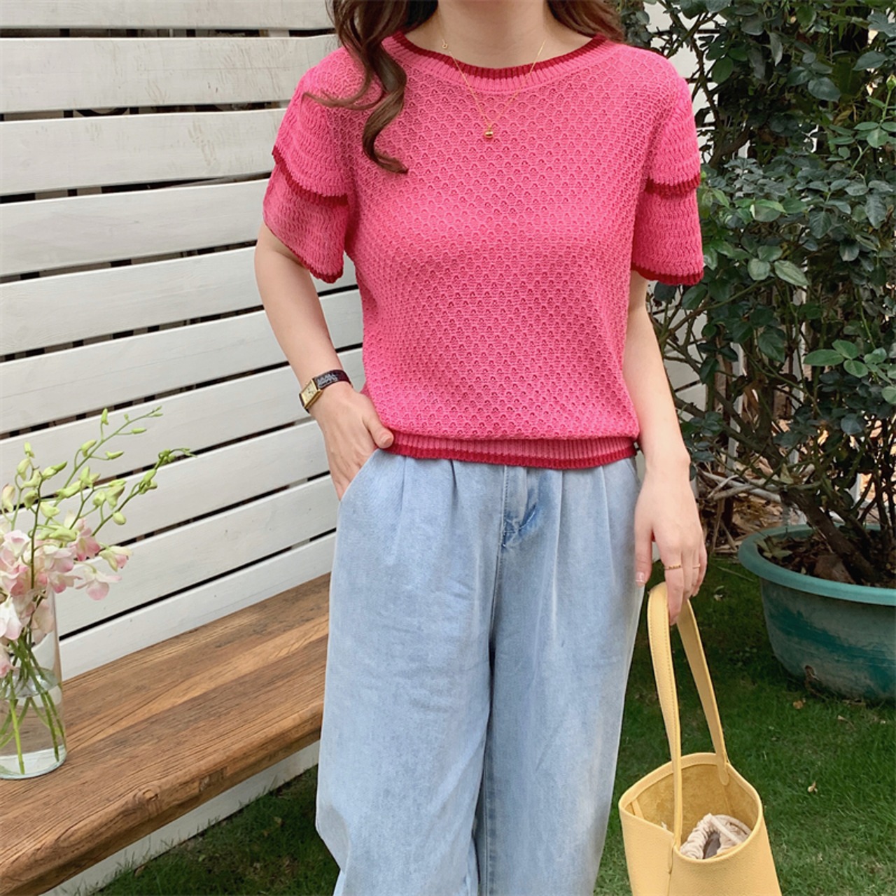 夏ニット Tシャツスタイルトップス半袖 Tシャツ薄型 Tシャツレディース ショート ハーフスリーブ サマー 夏物