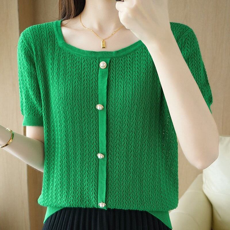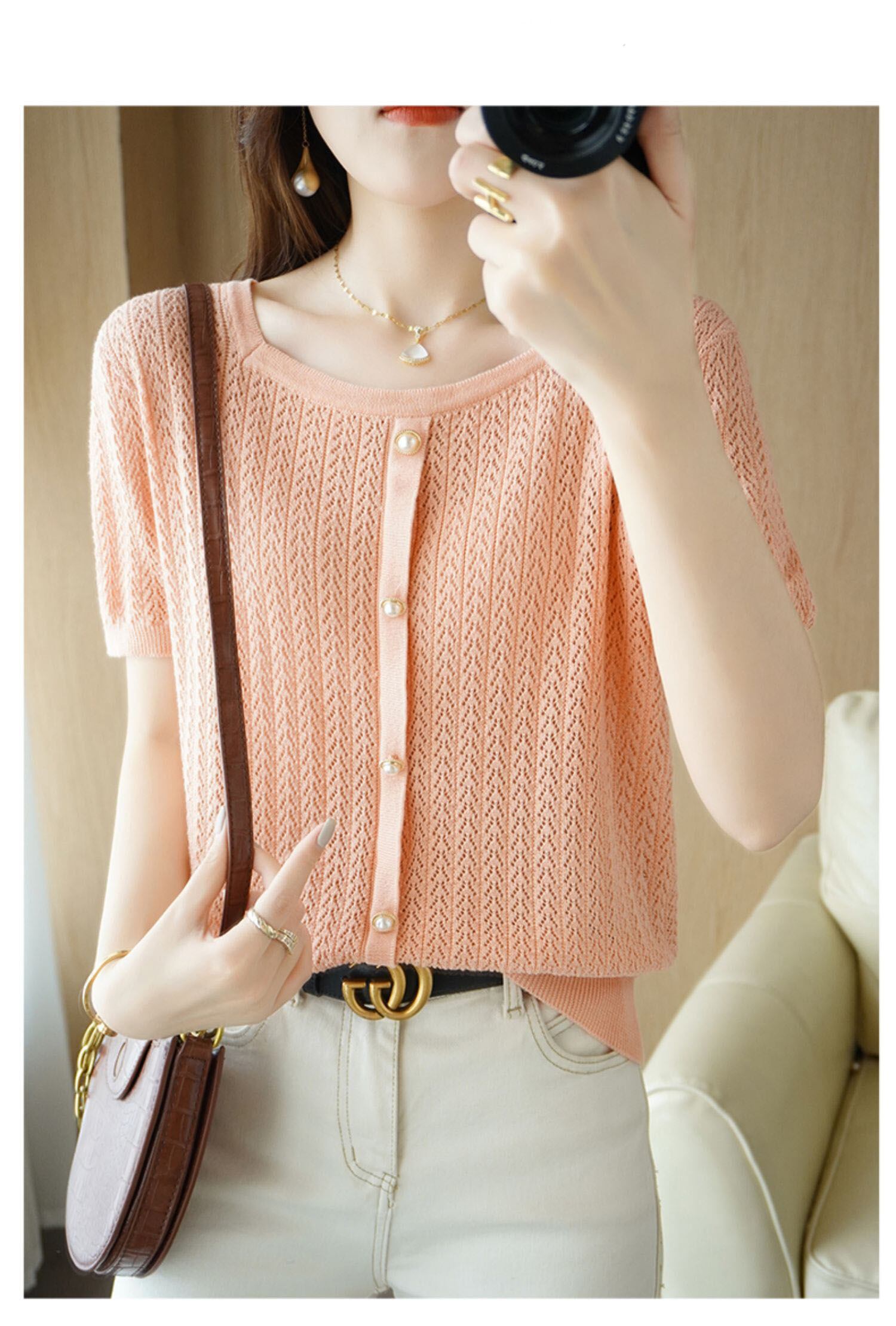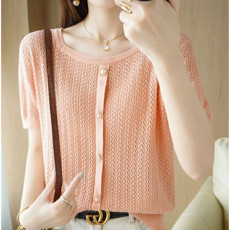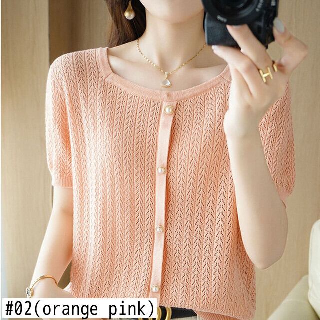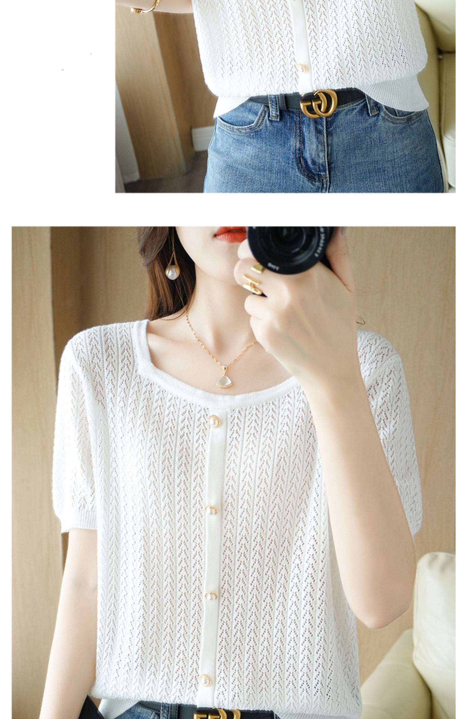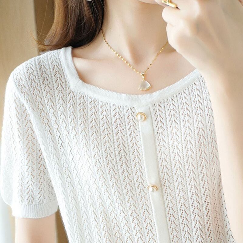 白半袖 Tシャツ夏 O ネックニットトップス Tシャツ中空アウト Tシャツ ショート ホワイト ハーフスリーブ サマー 夏物 Oネック