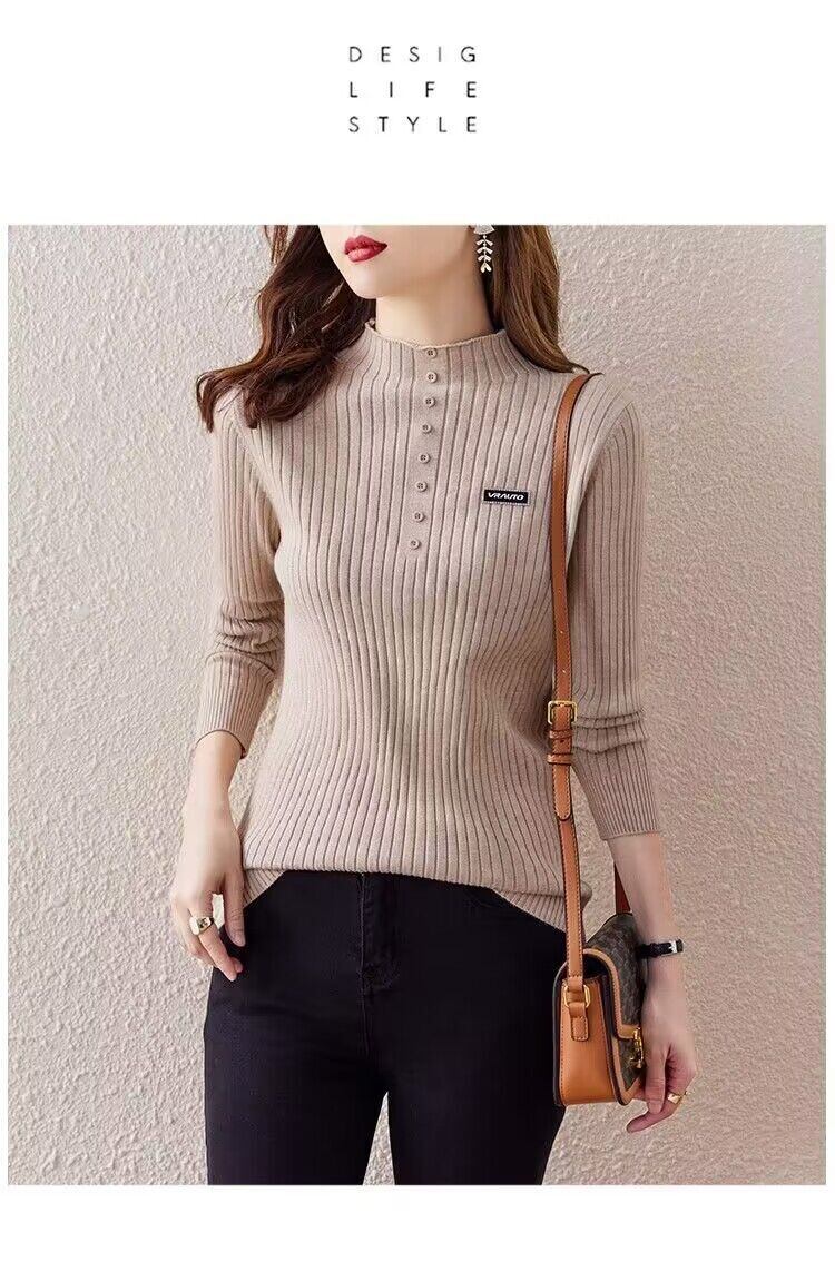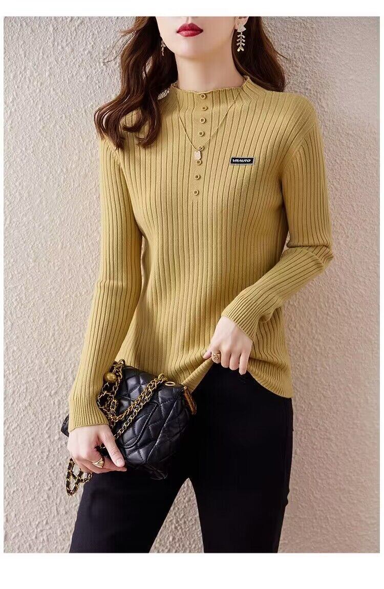 秋冬レディース服ボタンセータースリムジャンパートップウォームプルプルオーバーニットセーター オータム 秋物 ウィンター 冬物