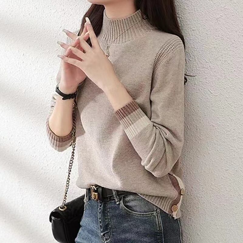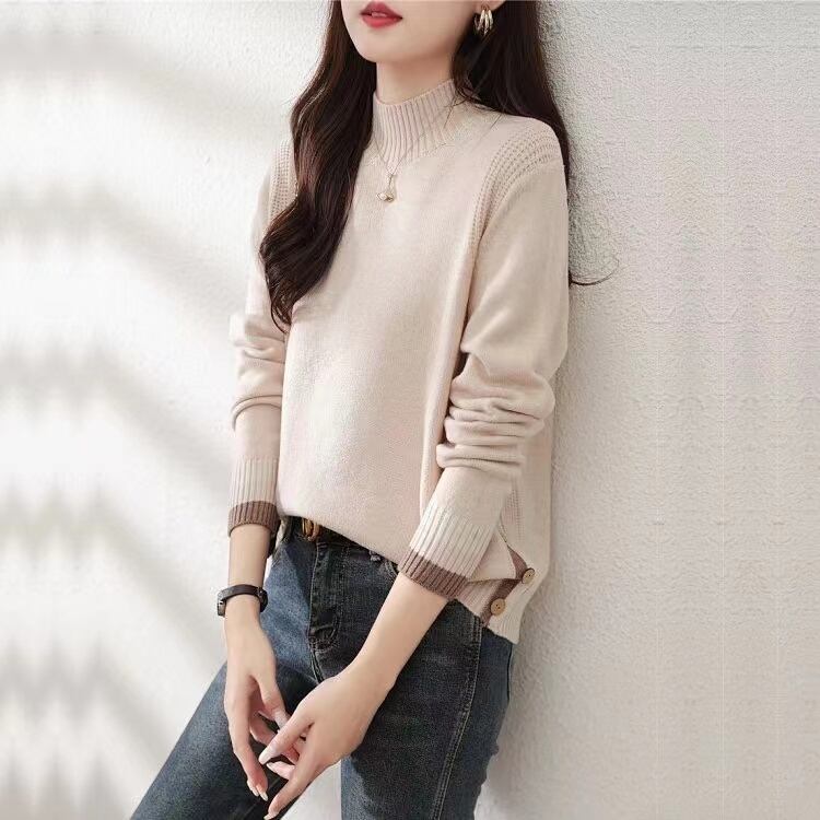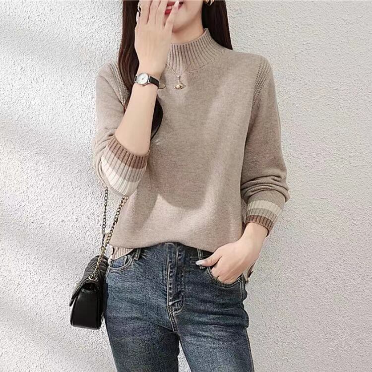 秋コントラストカラー長袖プルオーバーセーター半襟ニットトップス冬厚手暖かい服 ロング オータム 秋物 ウィンター 冬物