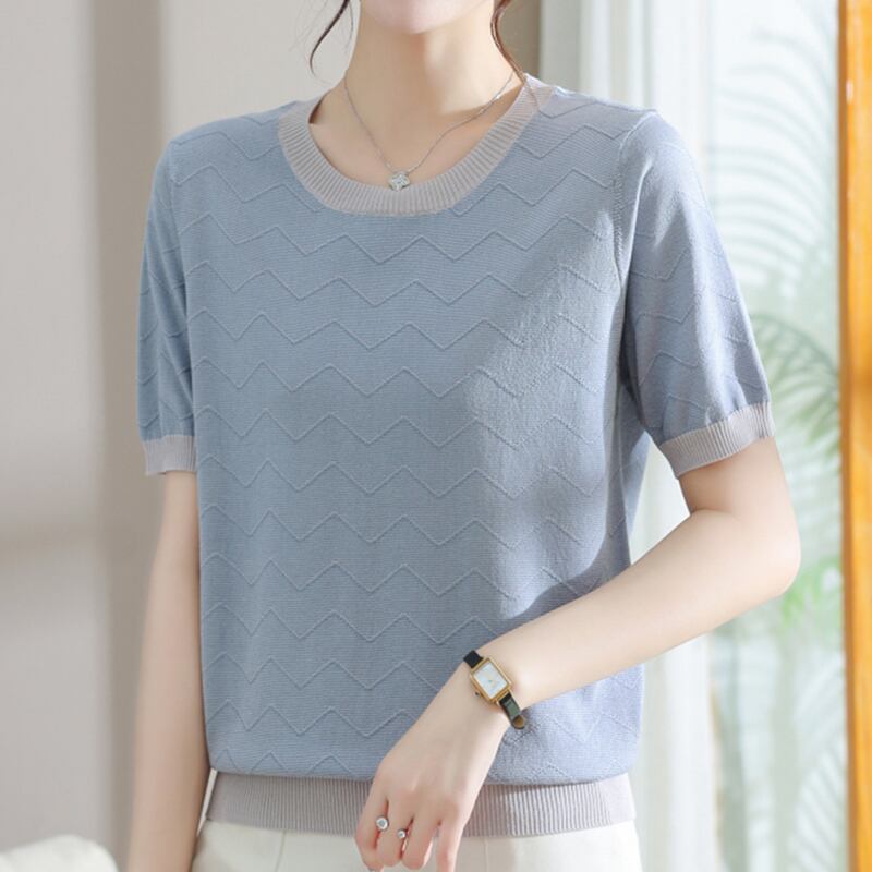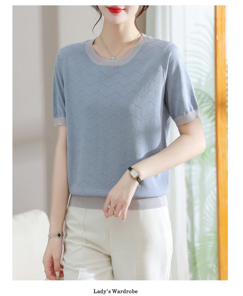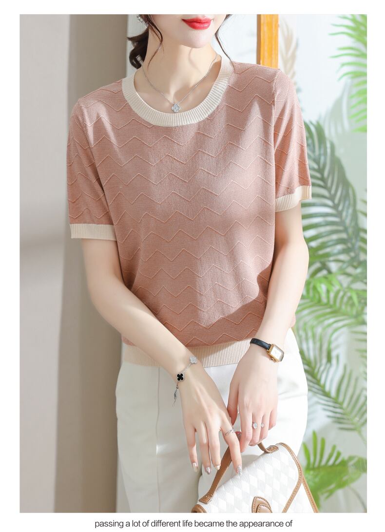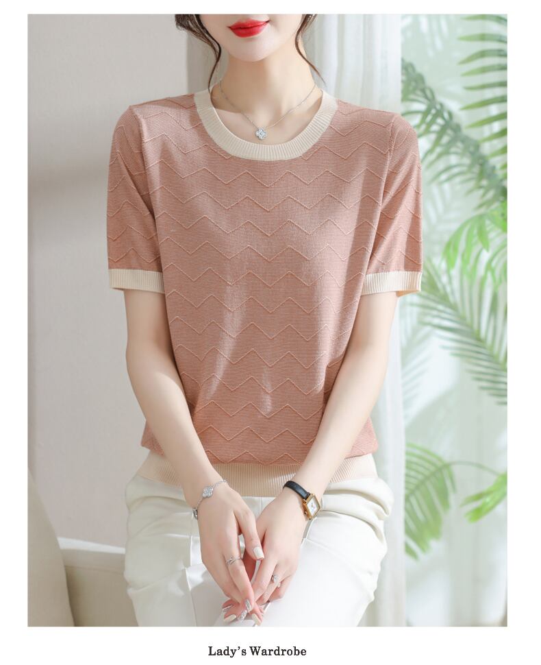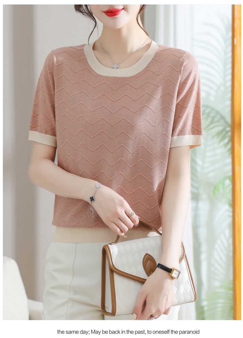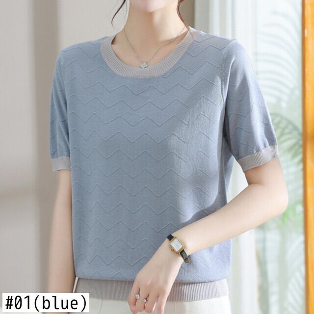 Tシャツ夏 O ネック Tシャツ半袖 Tシャツピンクルーズニットトップス ショート ハーフスリーブ サマー 夏物 Oネック