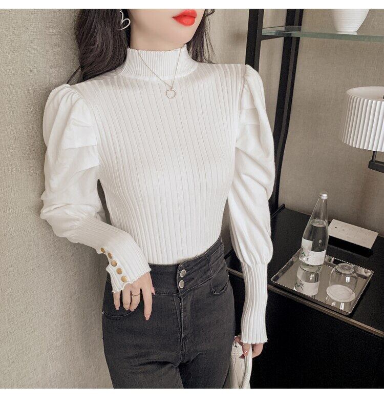 秋冬タートルネックセーター白ニットトップス長袖スリムプルオーバーセータープル ロング ホワイト オータム 秋物 ウィンター 冬物