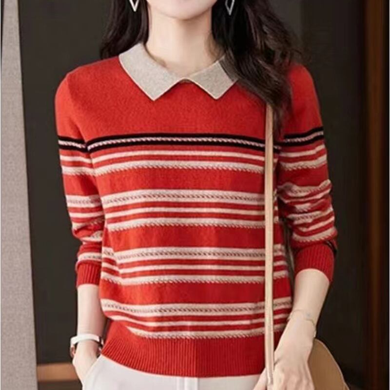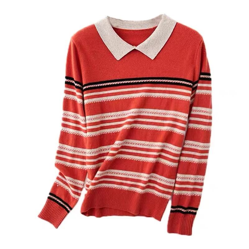 ルーズ冬服セーター秋長袖暖かいニットトップスストライププルオーバーセーター ロング オータム 秋物 ウィンター 冬物
