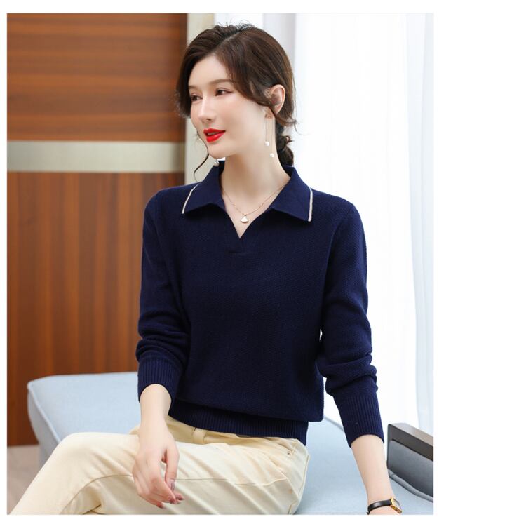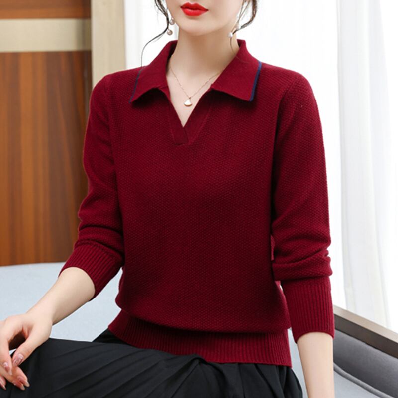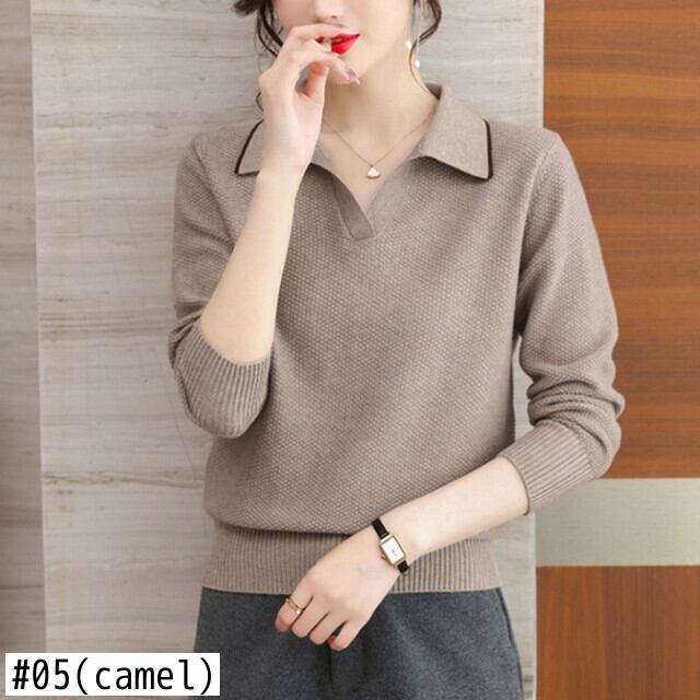セーター秋冬服長袖ニットトップスターンダウン襟ルーズプルオーバープル ロング オータム 秋物 ウィンター 冬物