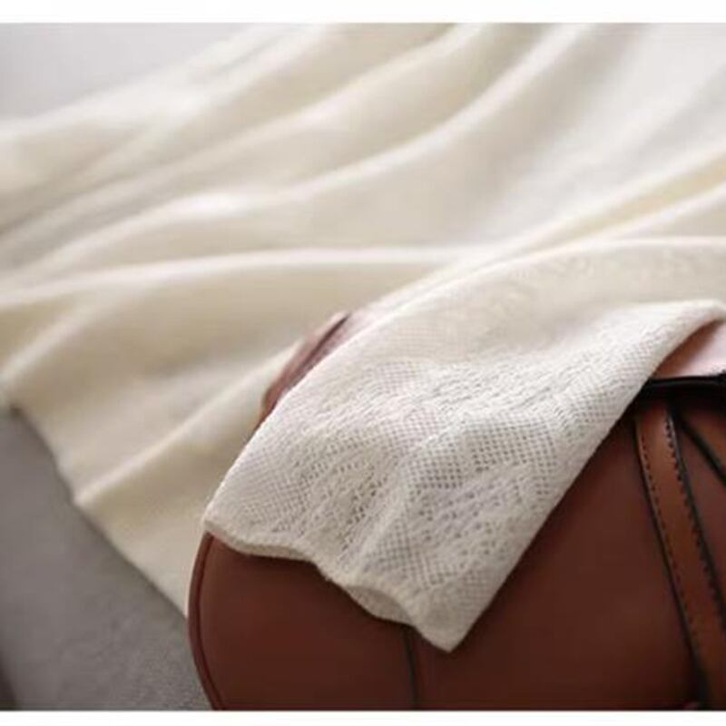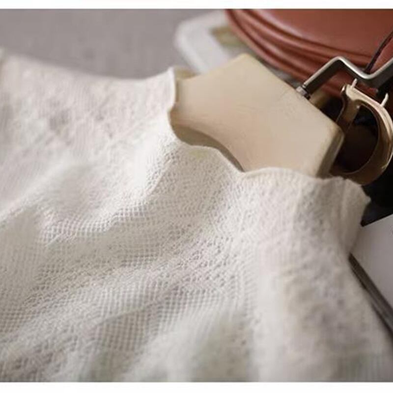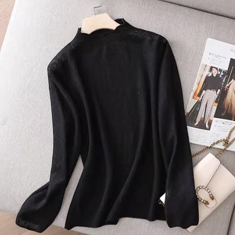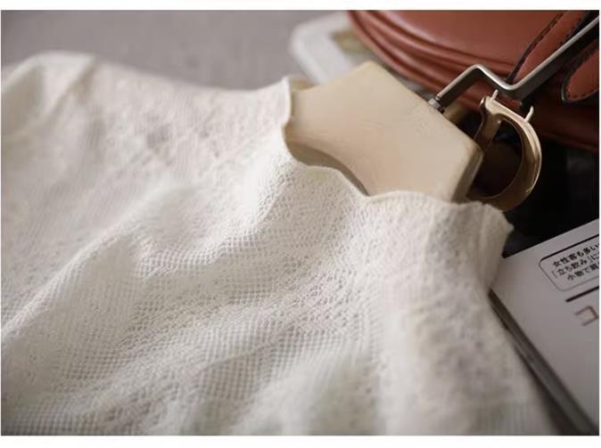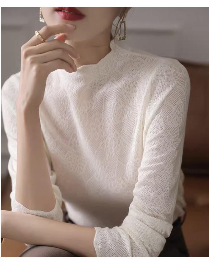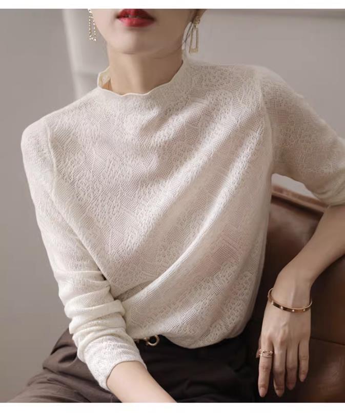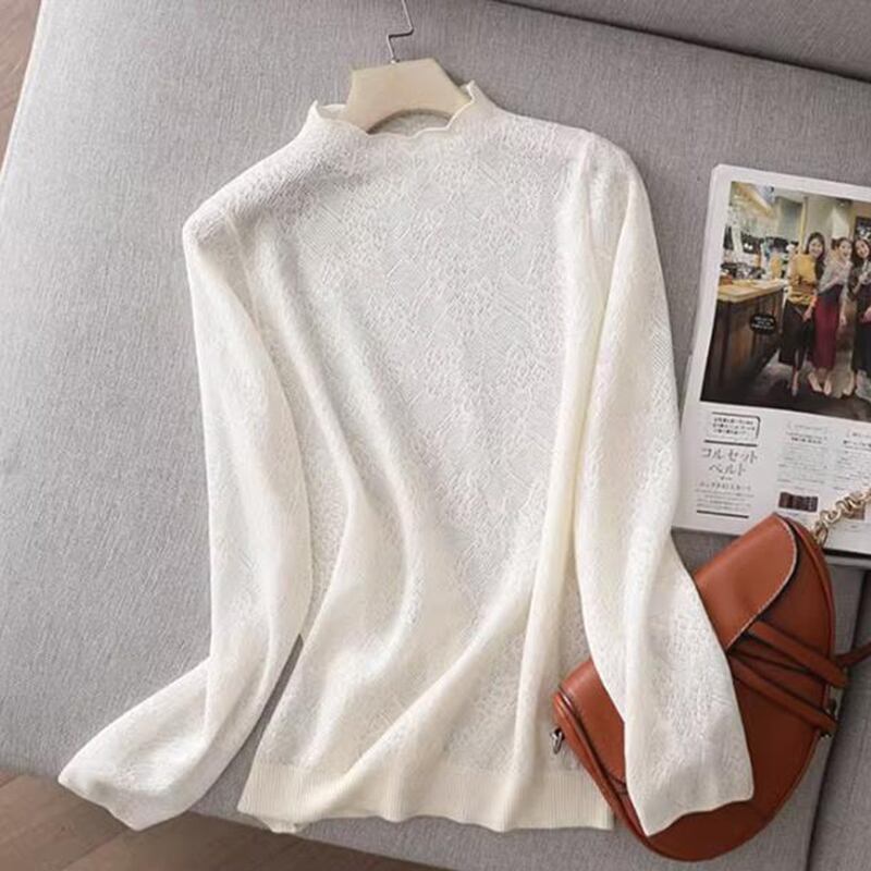 中空アウトジャカードハーフカラーセーター秋長袖プルオーバーニットトップス ロング オータム 秋物