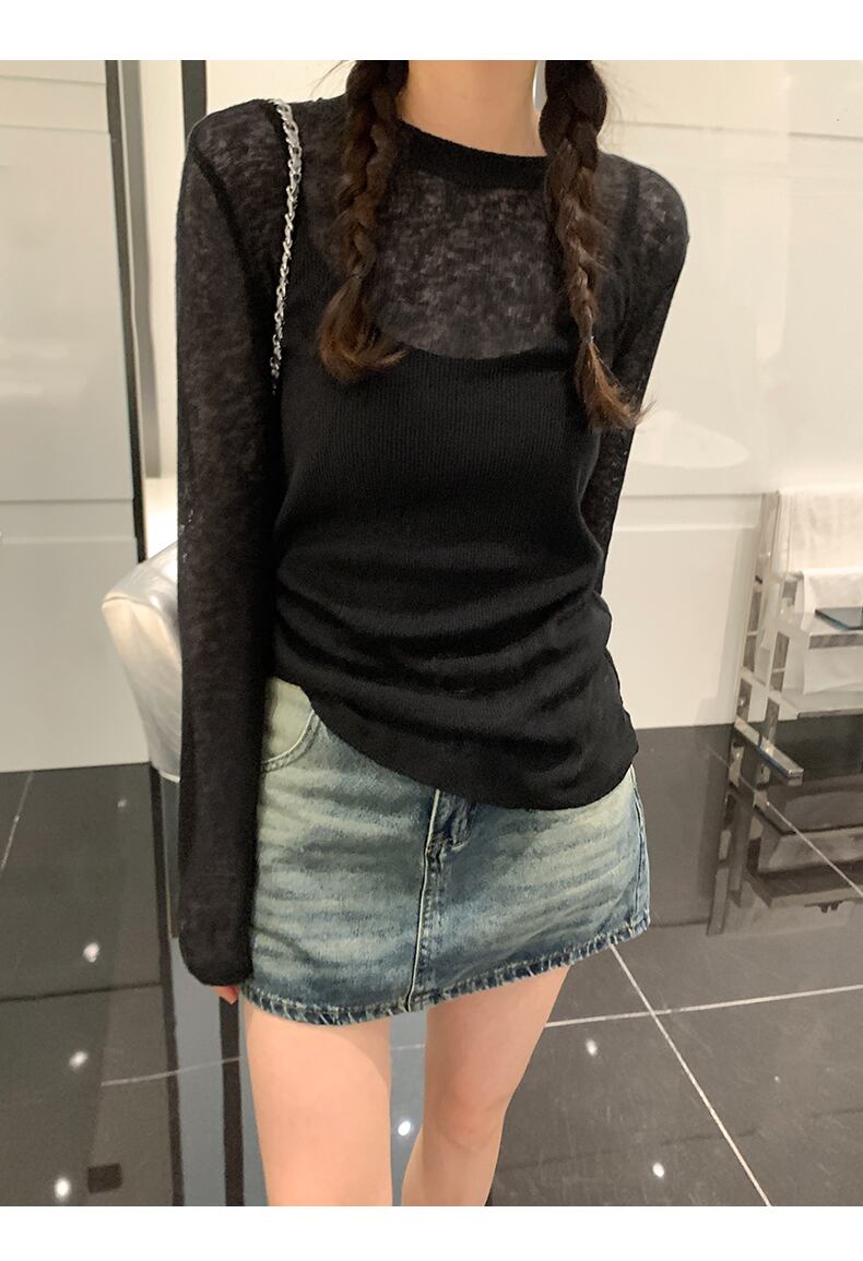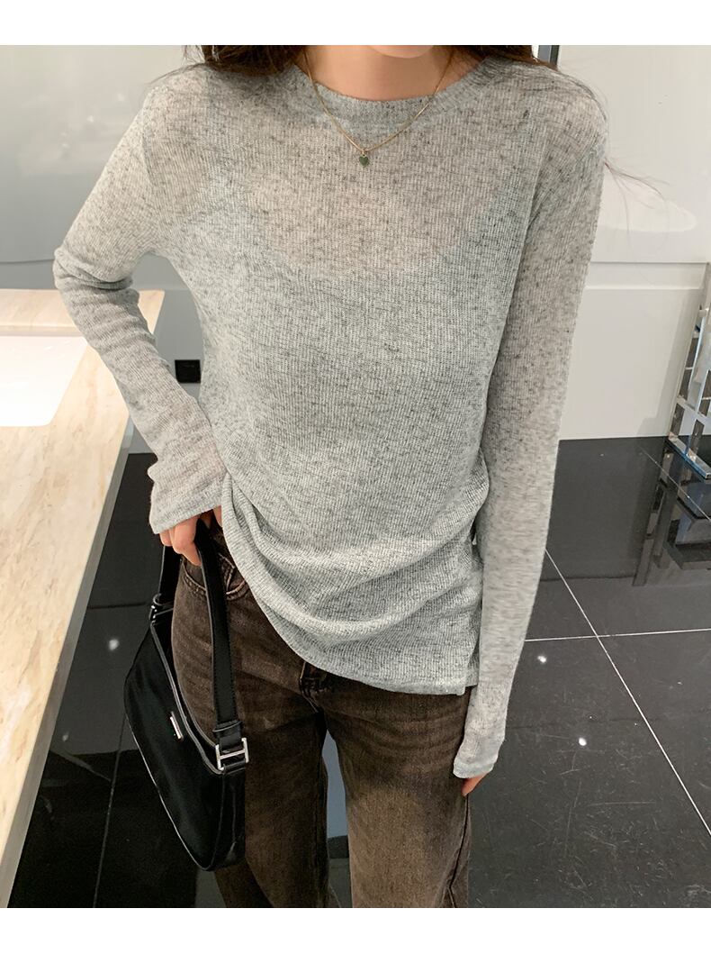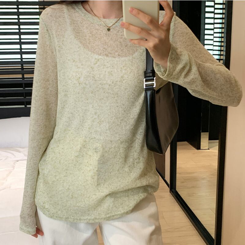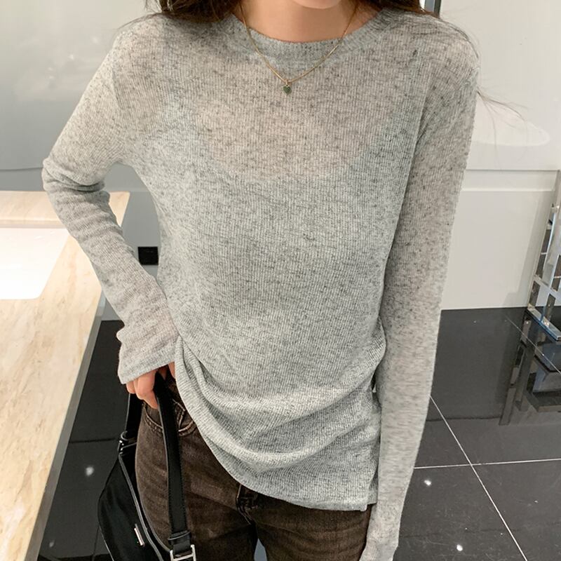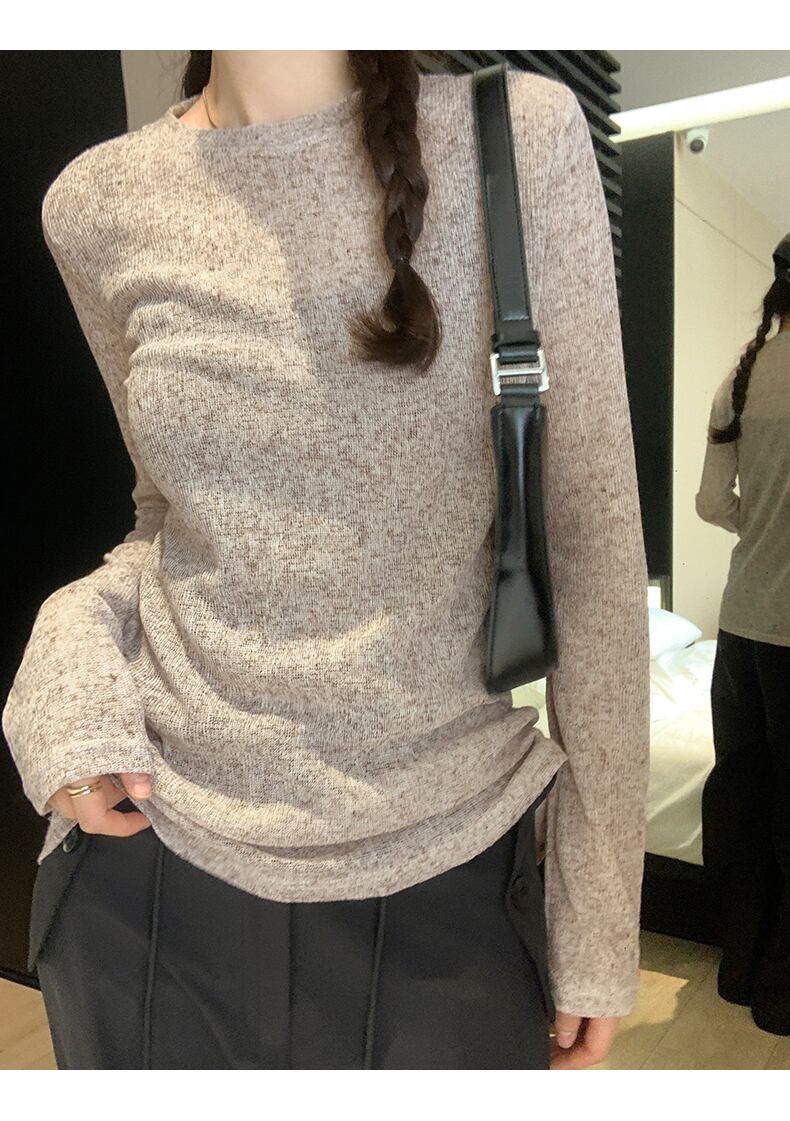 Tシャツ秋白 Tシャツスリム薄型 O ネックトップス長袖 Tシャツスタイル服 ロング ホワイト オータム 秋物 Oネック