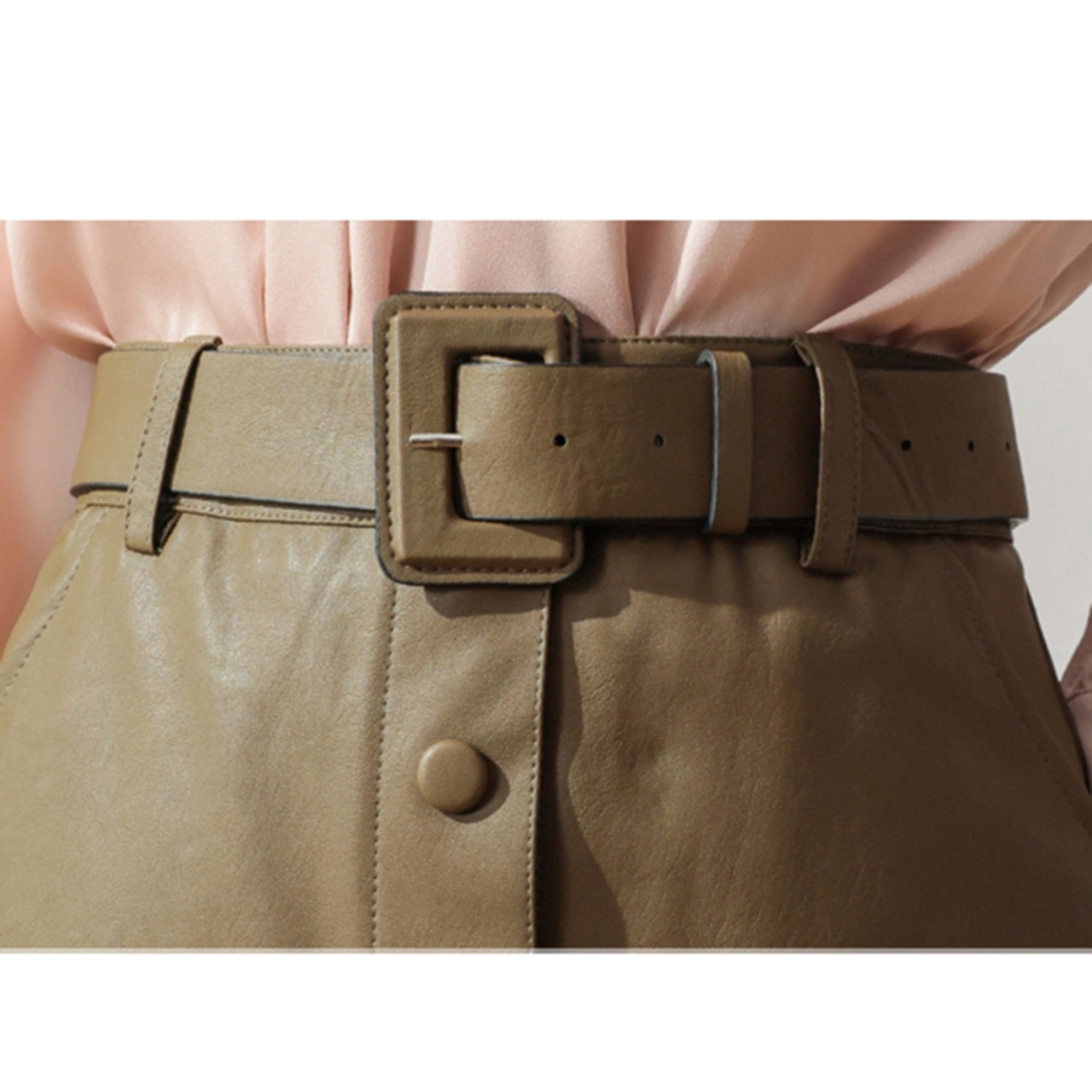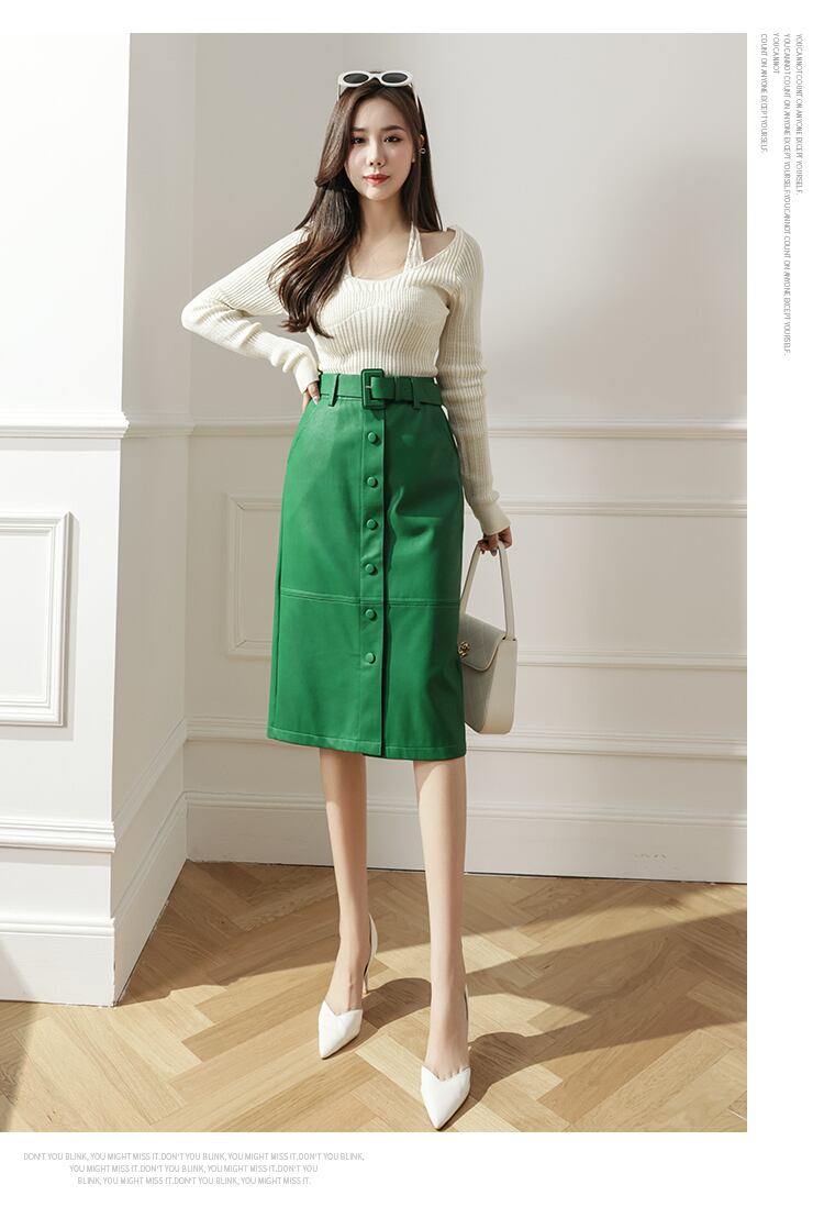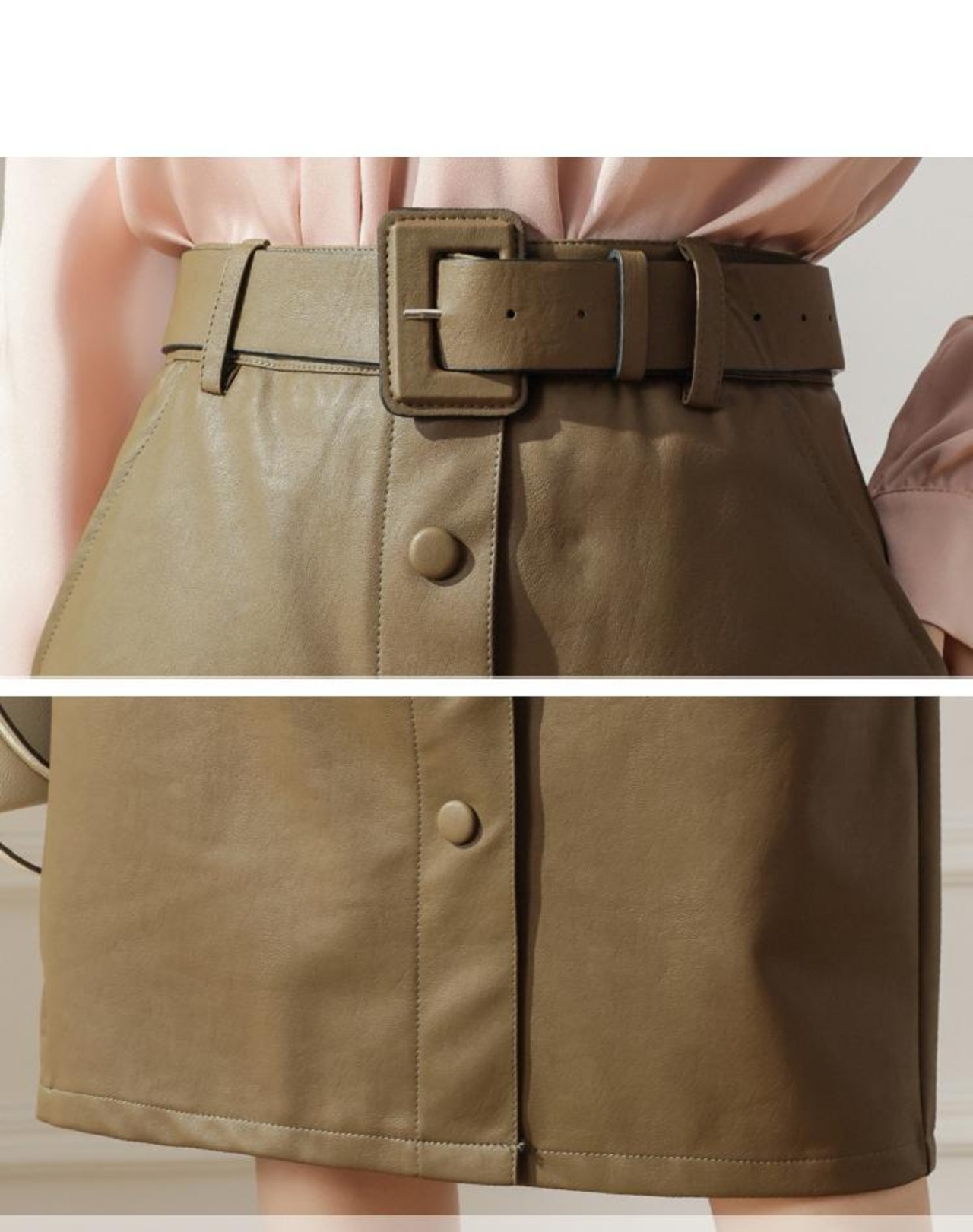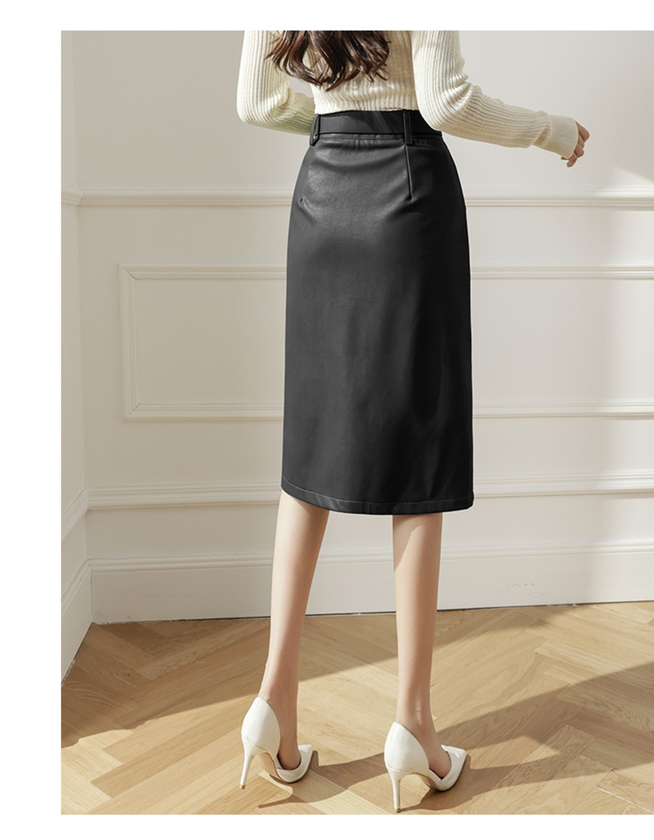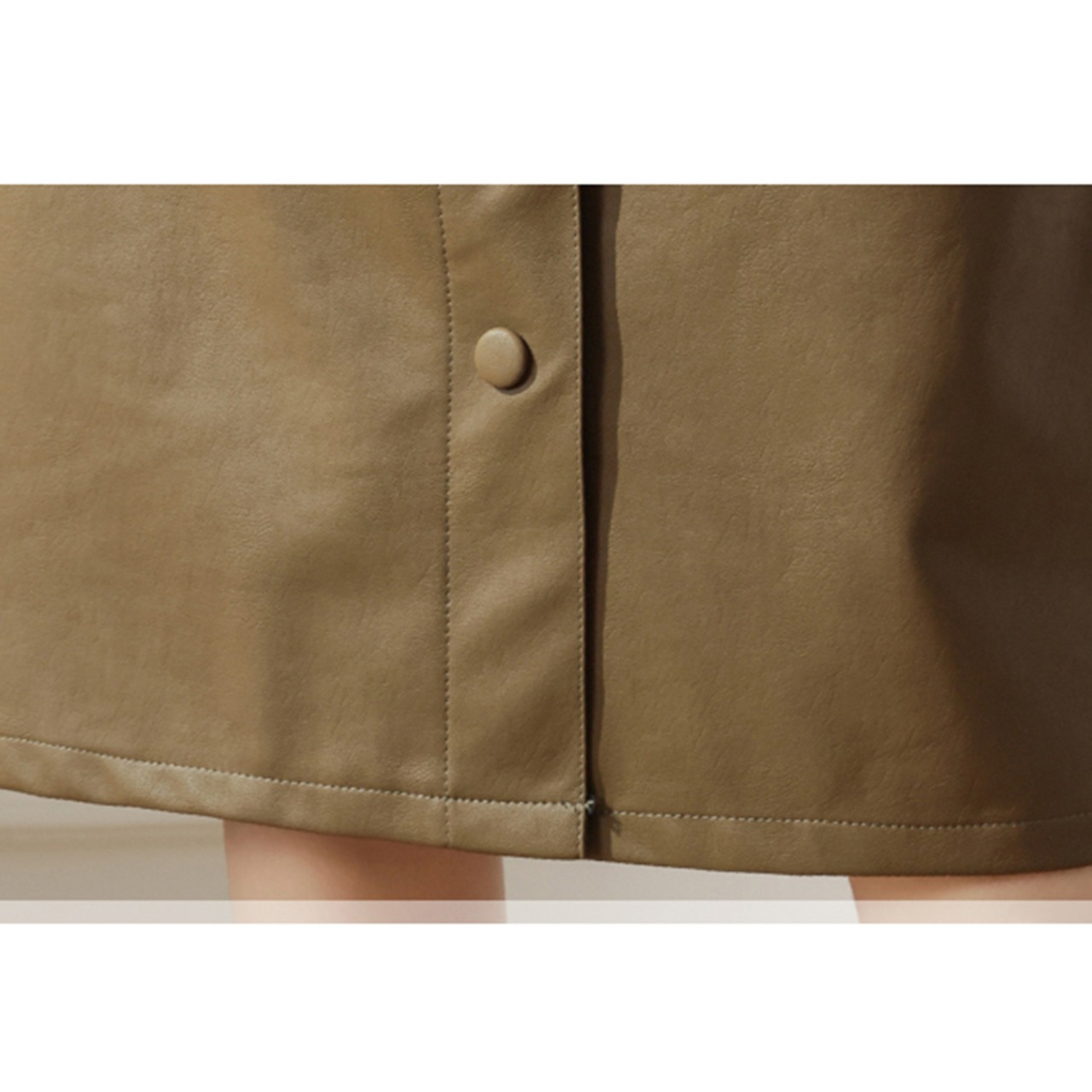 ウエスト Pu レザースカート秋冬黒 A ラインミディスカートボタンフロントスプリットスカート婦人服 ブラック オータム 秋物 ウィンター 冬物 Aライン