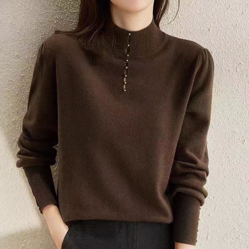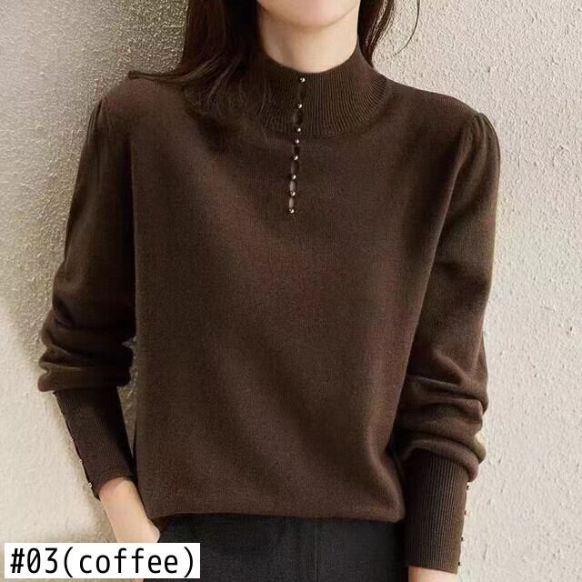 ビーズタートルネックセーターニットトップス長袖スリムプルオーバーセーター秋冬服 ロング オータム 秋物 ウィンター 冬物