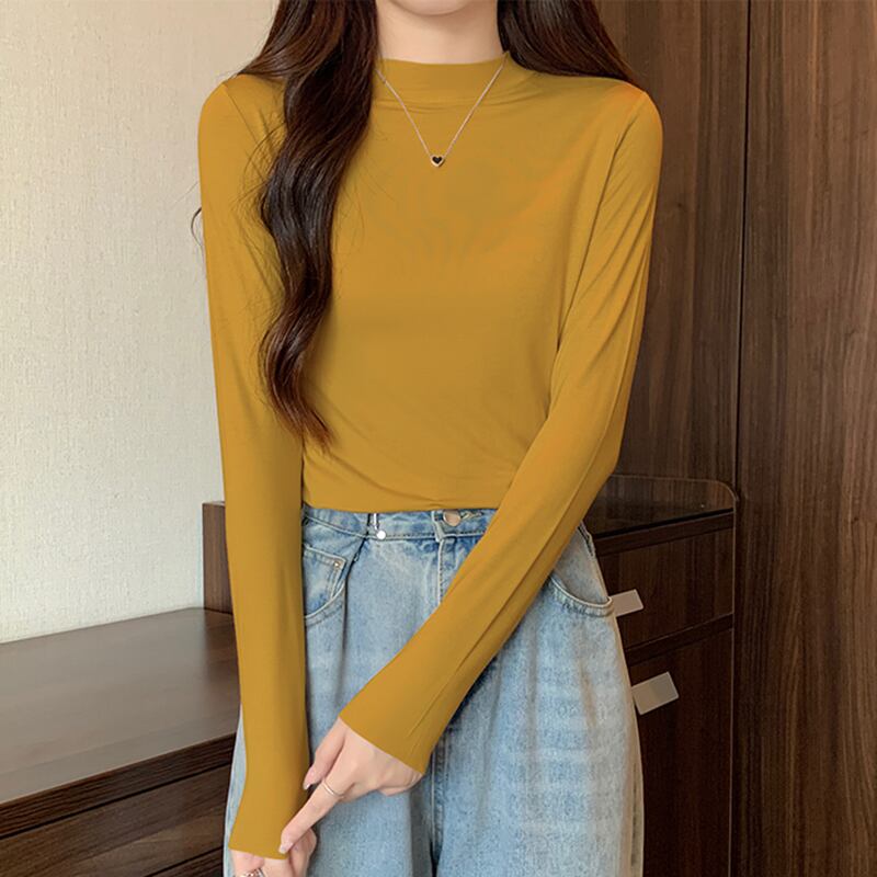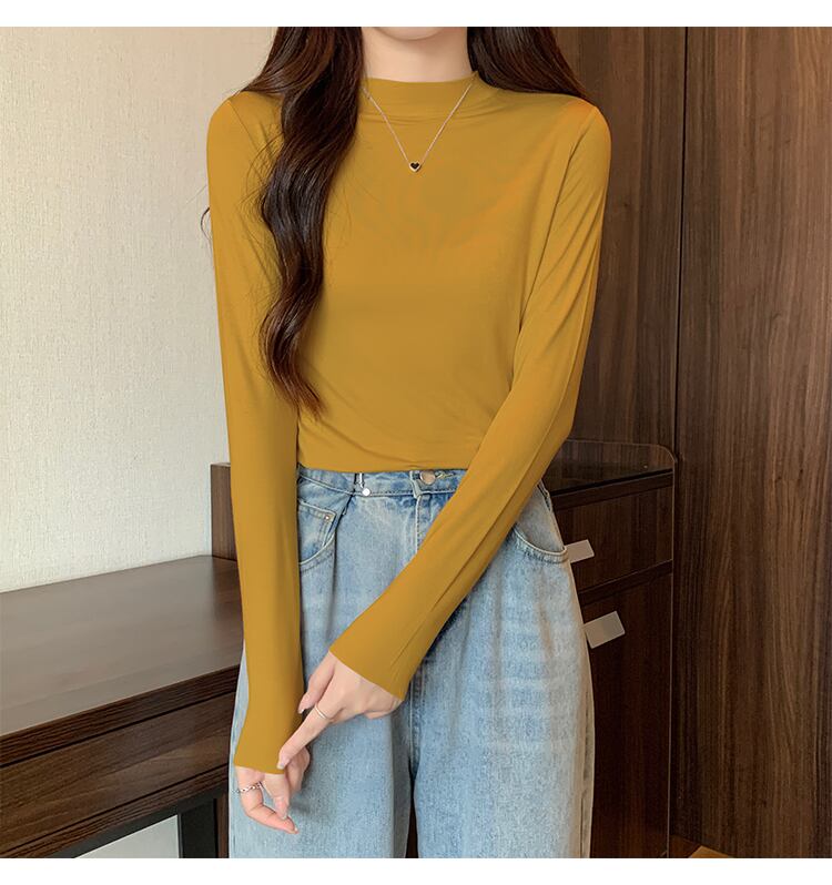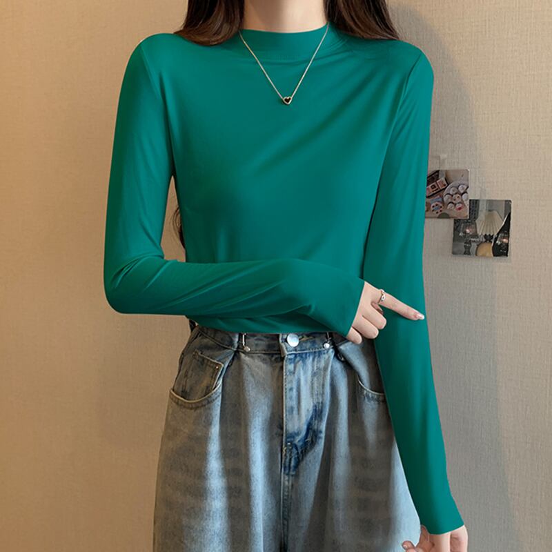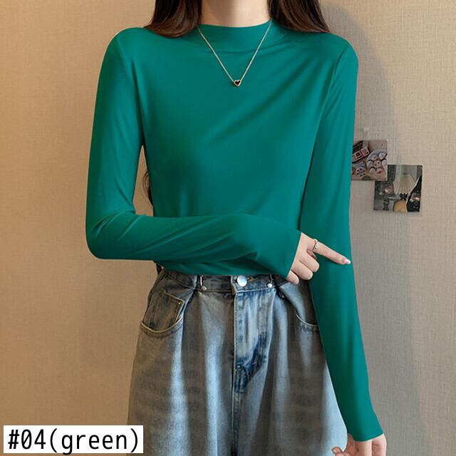 ベーシック Tシャツ長袖 Tシャツスリムボトリング Tシャツ秋レディース ロング オータム 秋物 ソリッドカラー